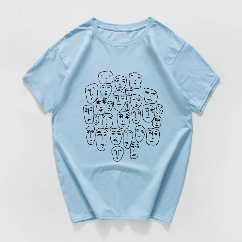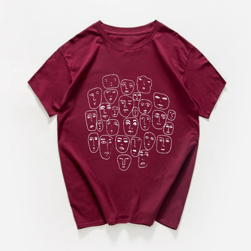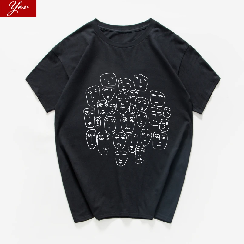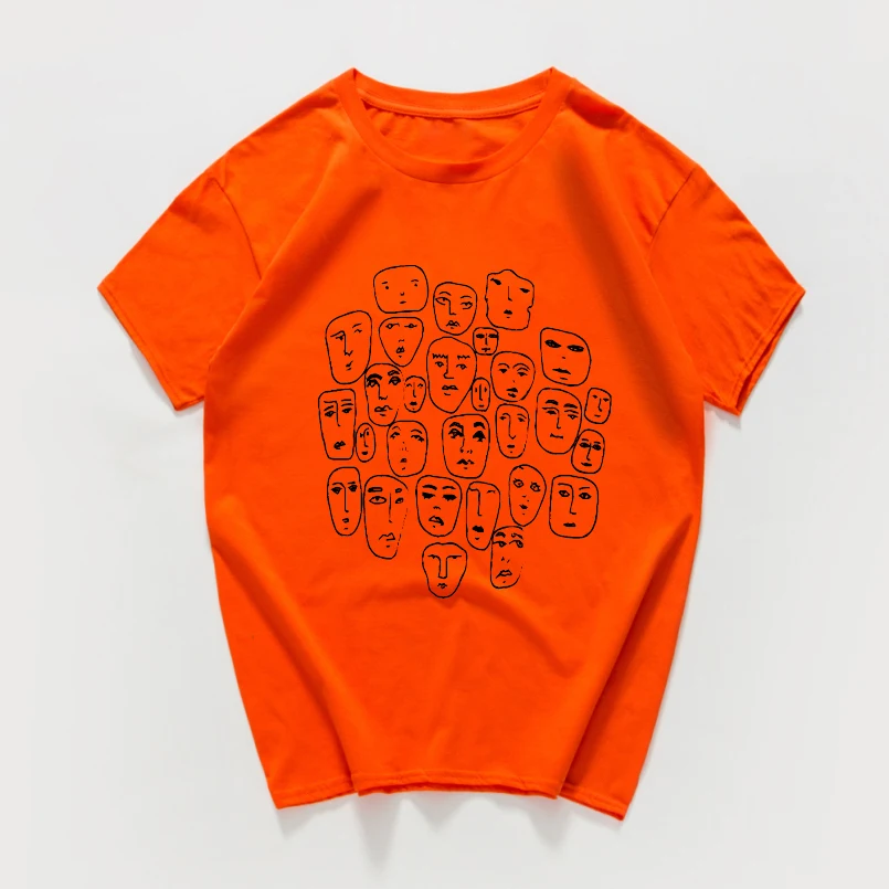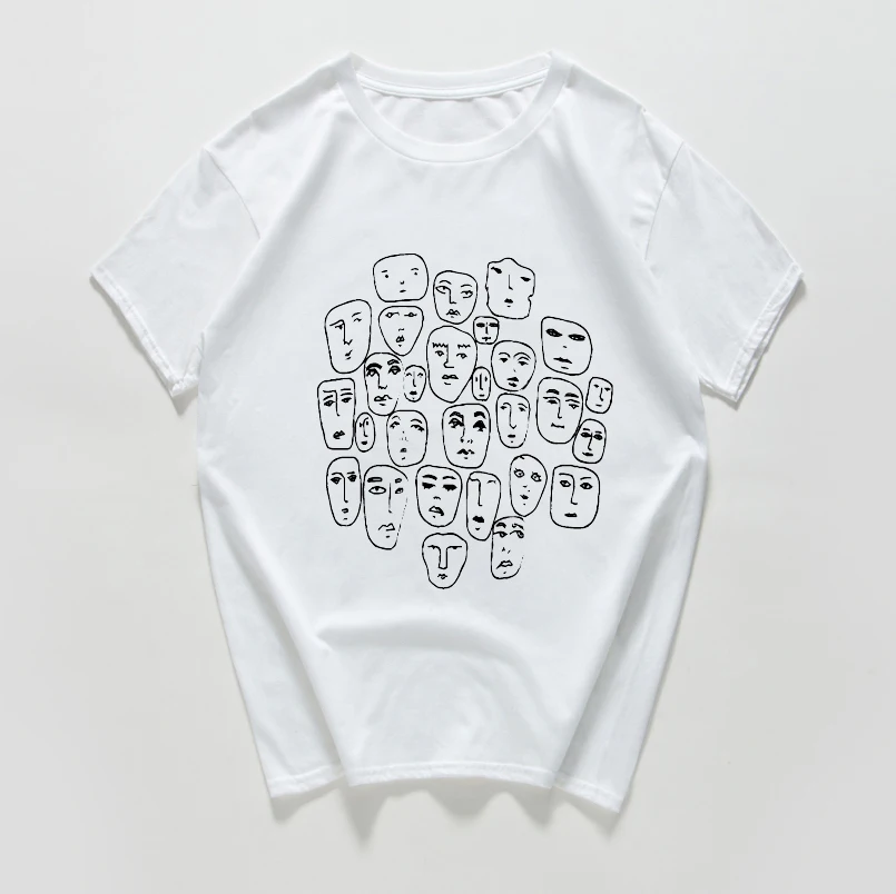 Мужская хлопковая футболка в стиле Харадзюку, летняя уличная футболка в стиле хипстер, с множеством лиц, из дышащего хлопка