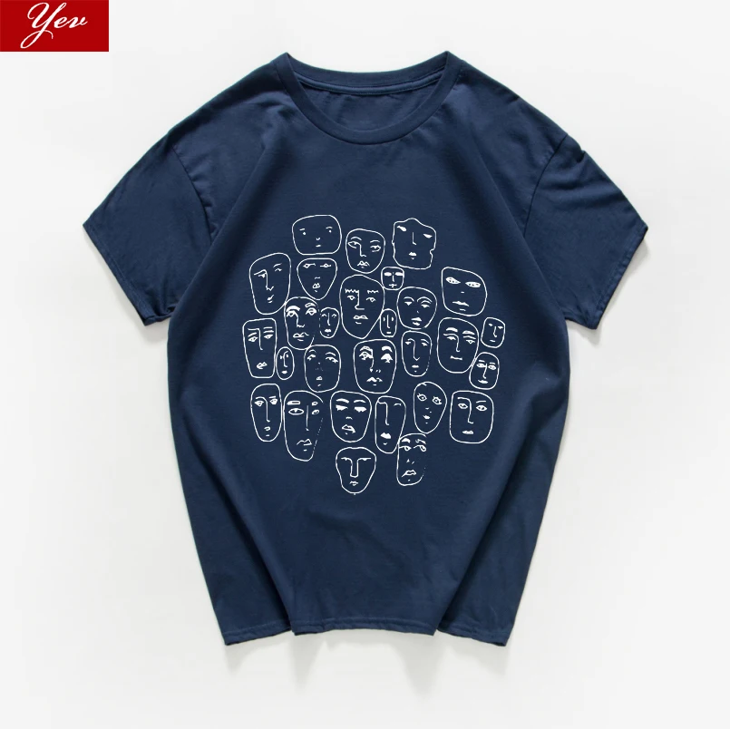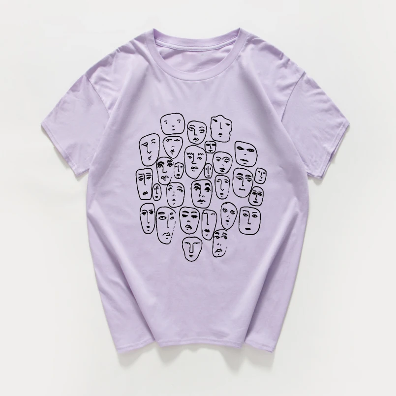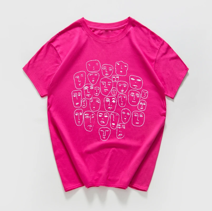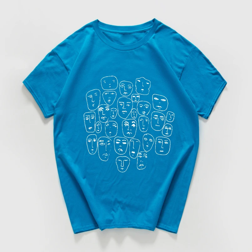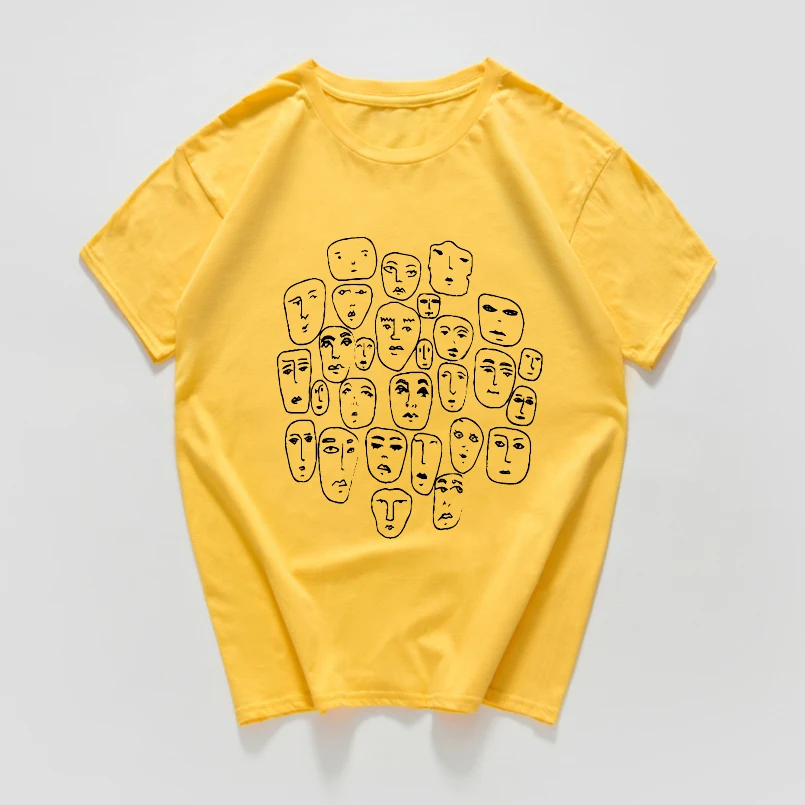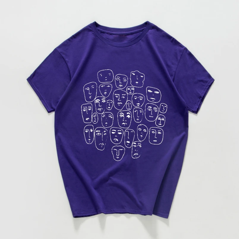 Мужская хлопковая футболка в стиле Харадзюку, летняя уличная футболка в стиле хипстер, с множеством лиц, из дышащего хлопка