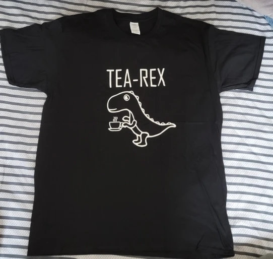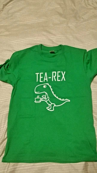 Футболка быстро и в идеальном состоянии. Материал приятной толщины. Я был удивлен качеством этой цены. Восхитительный логотип. Удивил моего мужа, который выпивает тонну чая. Ему понравилось. Размер на самом деле был немного велик для него, но он может усадиться при стирке, поэтому он идеален. Я определенно рекомендую этого продавца и эту рубашку. Отличное качество, отличная цена!