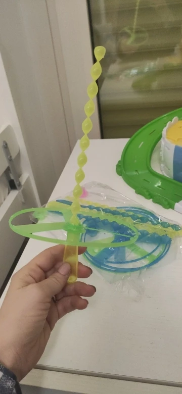 Доставка быстрая. Пластик очень хлипкий - за вечер игры сломались 3 вертушки (сами круги). Ребенок в восторге, да и взрослые с удовольствием запускают.