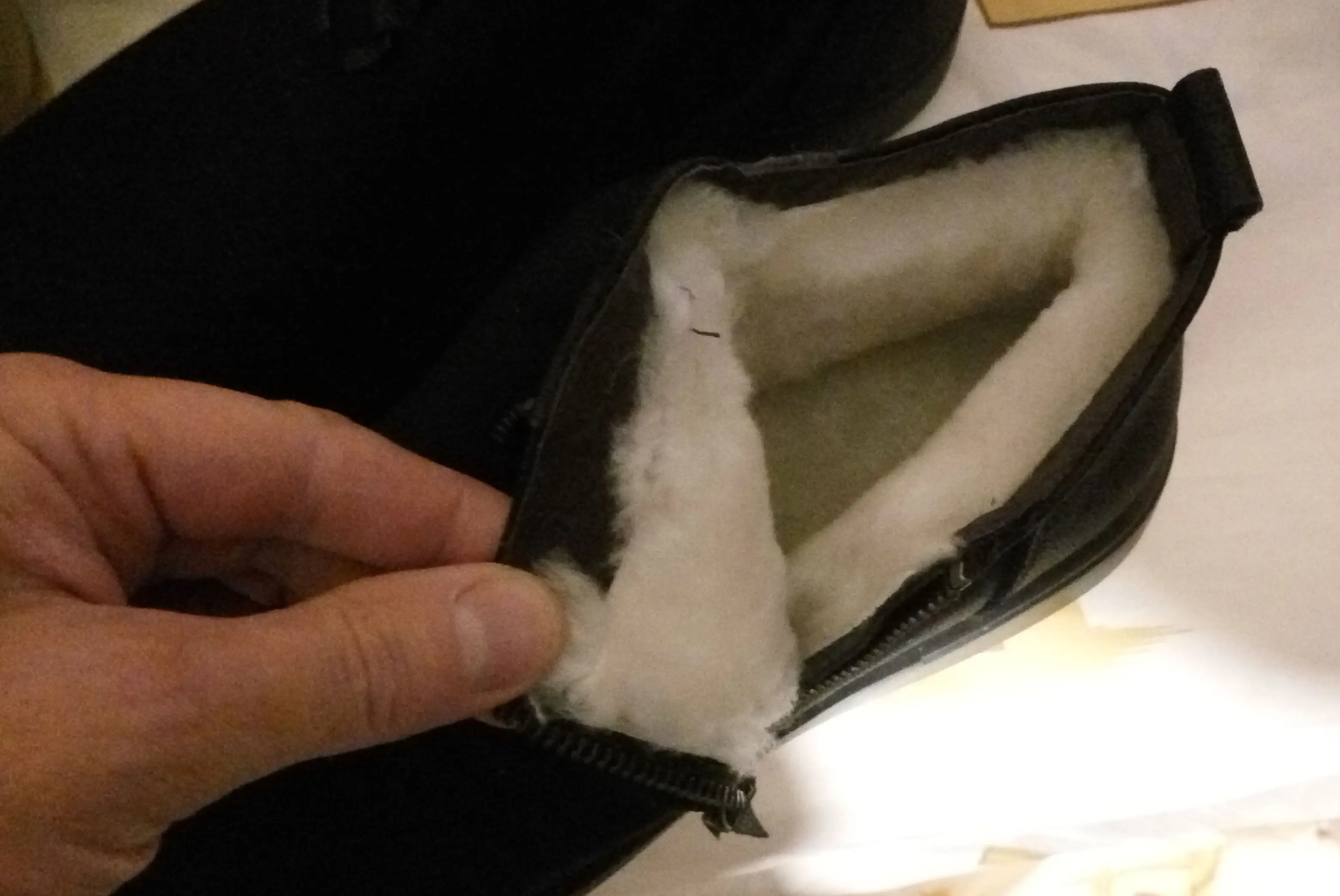 Есть два качества подкладки. Внешняя видимая подкладка хорошего качества из натуральной овчины. Внутри, где он не виден, он имеет низкое качество (может быть синтетический) инкрустация подошвы также низкое качество.