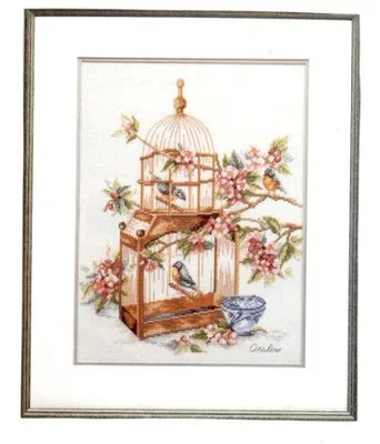 Набор для вышивки крестиком с изображением кролика на день рождения, хлопковая нить с изображением животных, вышивка крестиком из холста Lanarte 34227 Vogelkooike