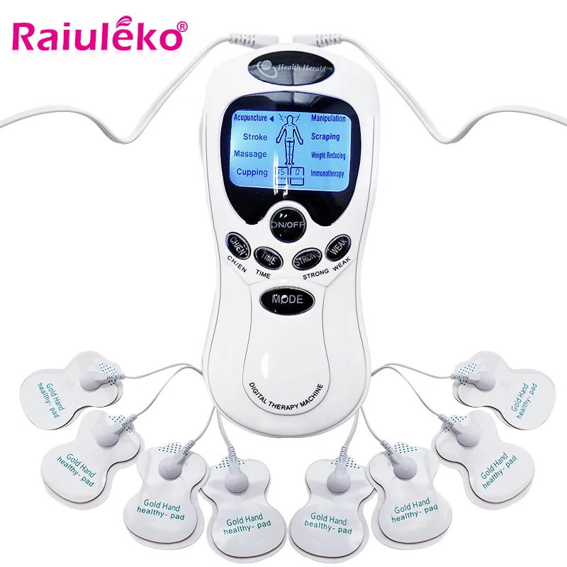 Электрический импульсный корпус иглоукалывания, массажная цифровая терапевтическая машина, 4 подушечки, электрический стимулятор мышц для всего тела, 8 моделей