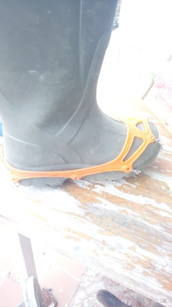 Ледоступы на первый взгляд очень хорошие, для сапог на рыбалку самое то! Резина мягкая, надеялись с трудом, но не болтаются, на чистом льду точно нос не расквасишь. Размер для сапог рыбацких берите самый большой 12,5. Пока доволен, на рыбалке покажут себя.