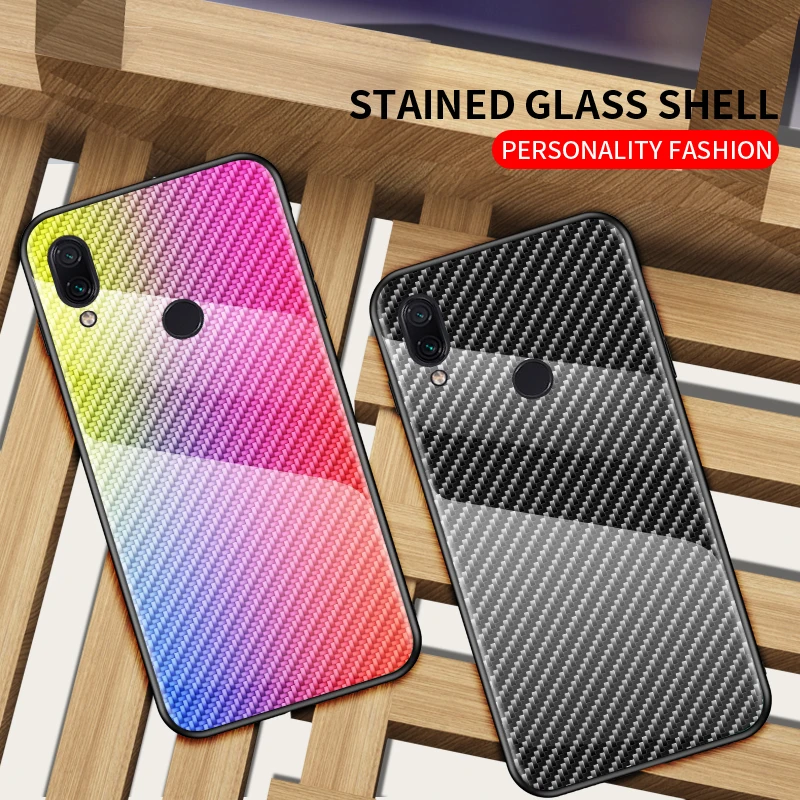 Чехол для Xiaomi Redmi Note 8 Pro, 8T, углеродное волокно, закаленн...