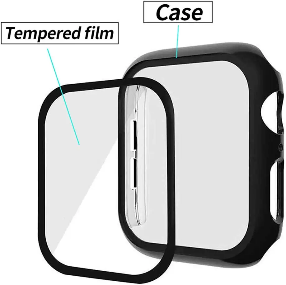Закаленное стекло + чехол для Apple Watch Series 7, 41, 45 мм, защи...