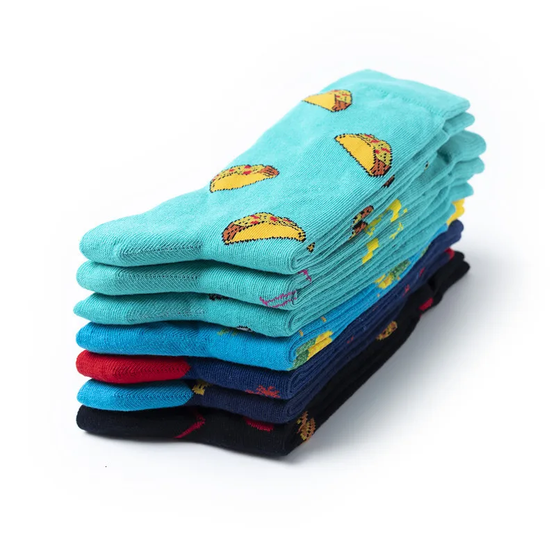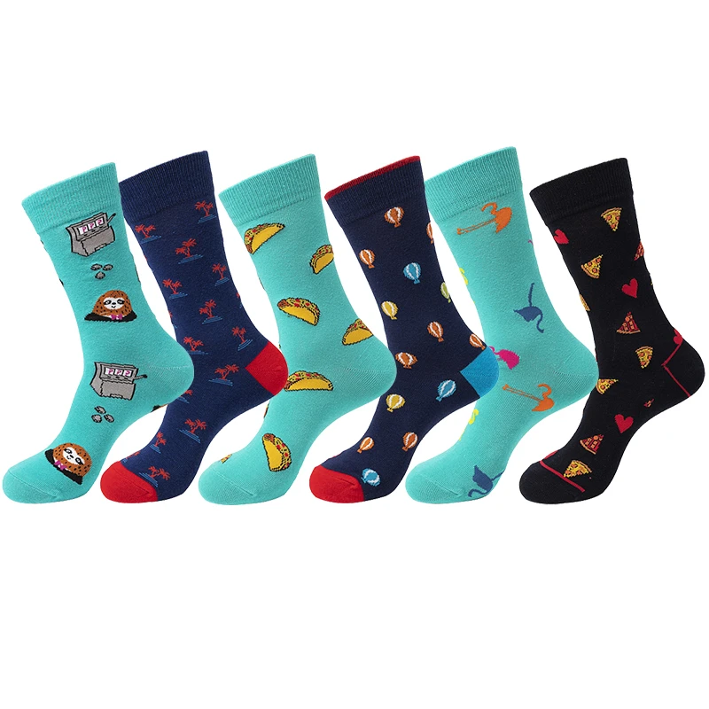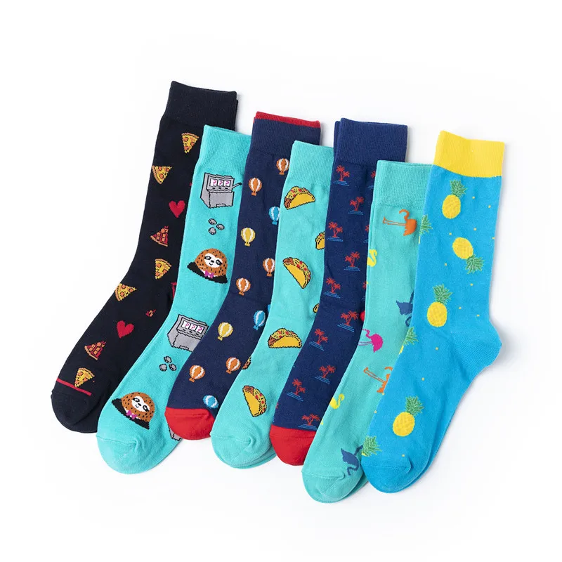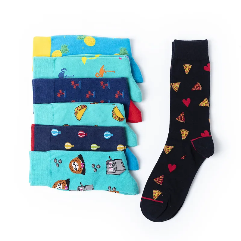 Harajuku стиль Счастливые мужские носки смешной чесаный хлопок платье повседневные Свадебные носки красочные воздушные шары пиццы Новинка скейтборд носки