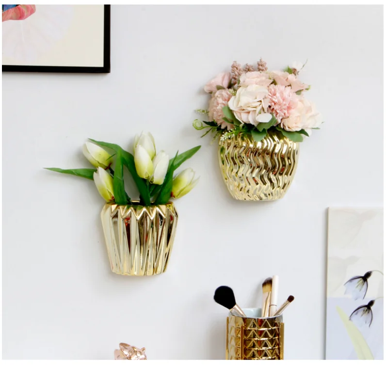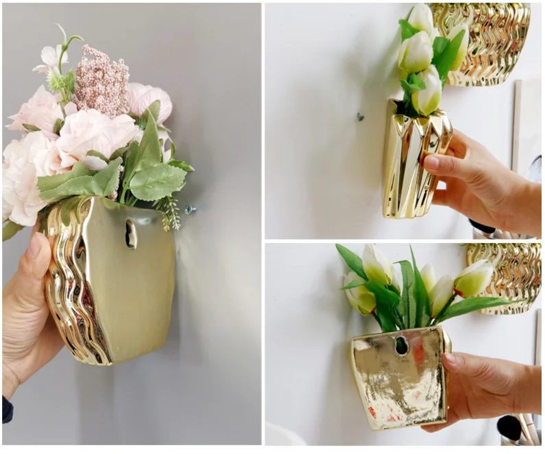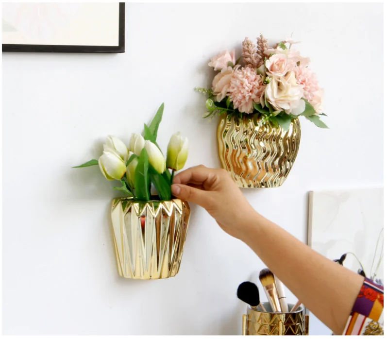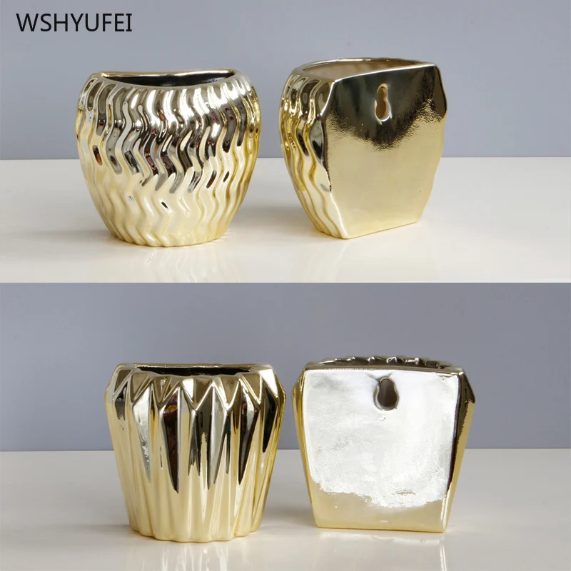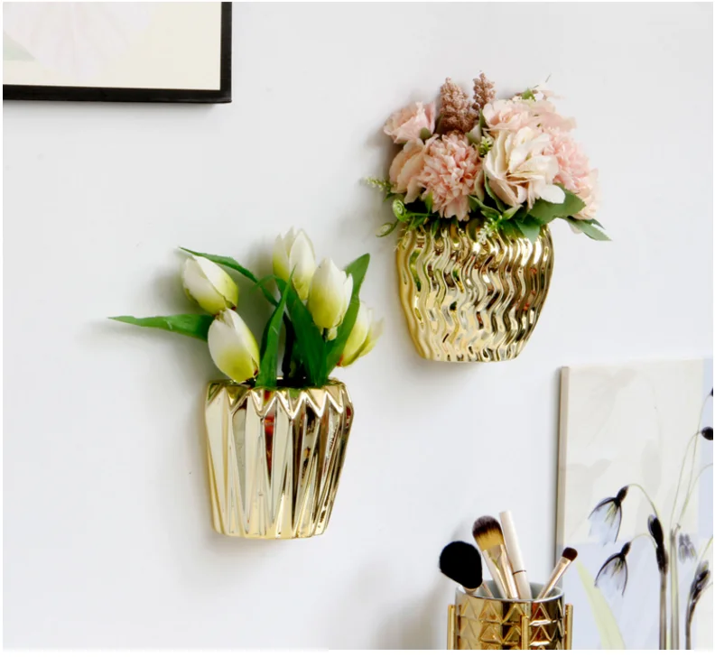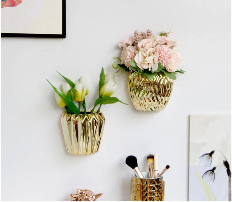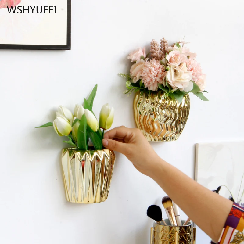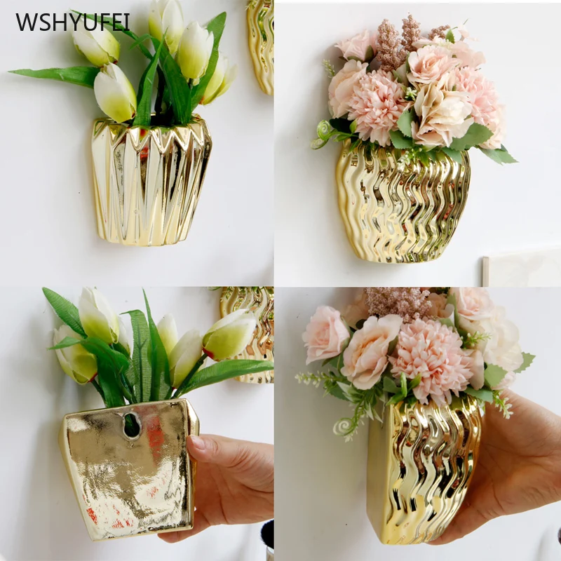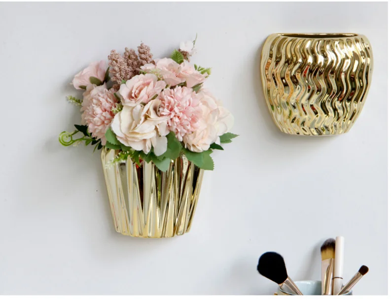 Креативная Европейская Золотая настенная висящая керамическая ваза цветочный горшок настенное украшение поддельный цветочный горшок Настенная роспись украшение Цветочная корзина