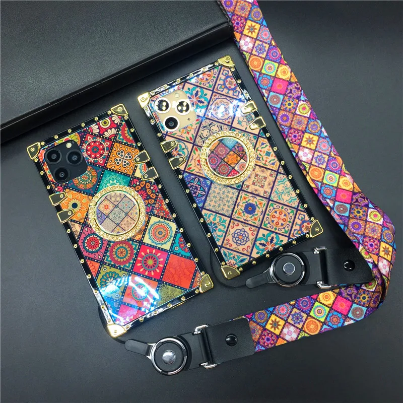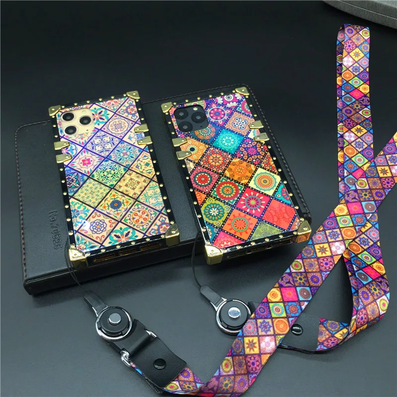 Роскошный клетчатый винтажный цветочный чехол для iPhone 13 PRO 12 X XS Max XR, квадратный чехол с ремешком для iphone 11 PRO MAX 7 8 Plus 6 6S