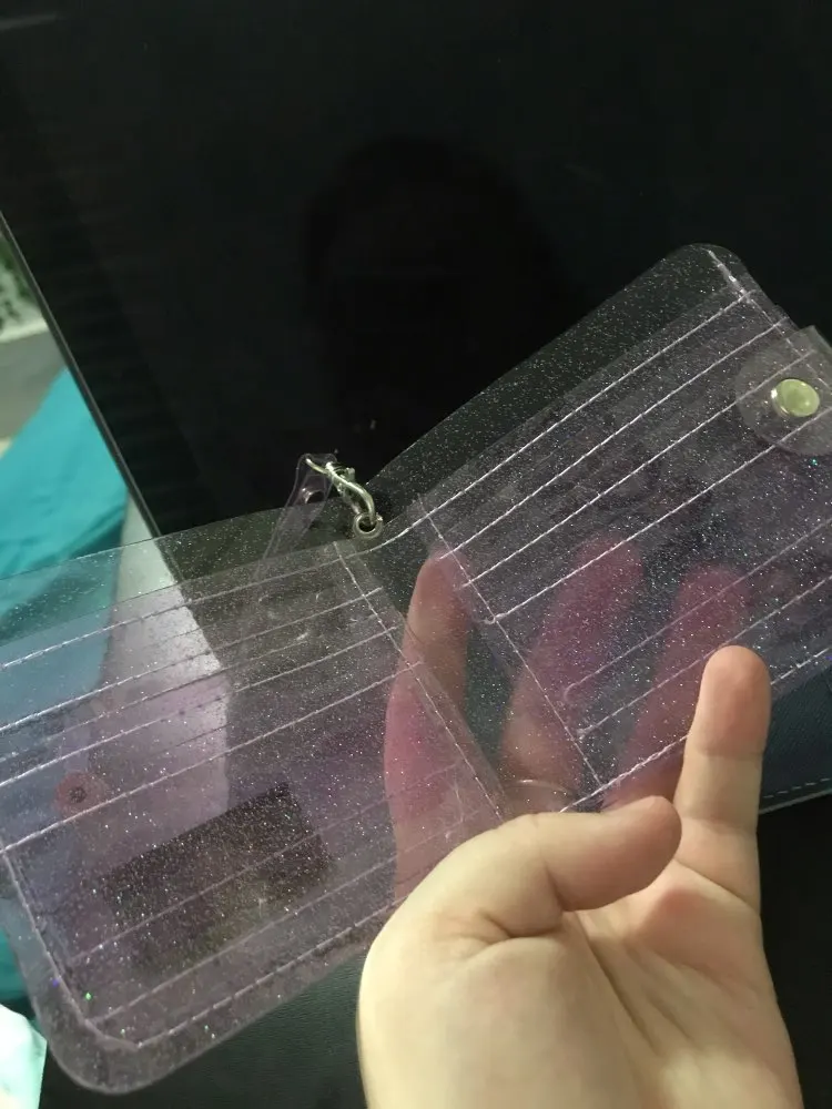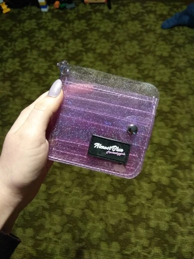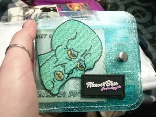 Кошелёк пришел примерно за месяц, нормальный срок для моего региона (Краснодарский край). Качеством в принципе довольна, но снижаю оценку за неакуратный верх кошелька, что-то с пластиком, ещё местами неровные швы. Всё же за такую цену хотелось хотя-бы швы ровные. Но мне нравится цвет кошелька, блестки. Боялась, что купюры не будут влазить, но нет, места полно даже для наших длинных рублей. Отделы для карт тоже хорошие, все влазит. Нравится что есть 2 "скрытых" кармана под отделениями для карт. К кошельку положили длинную верёвочку из такого же материала, скорее всего для ношения на шее. Это очень круто, когда-нибудь пригодится. Ну про запах не писал только ленивый, но это не страшно, выветрится. Я рада покупке, буду с удовольствием носить.