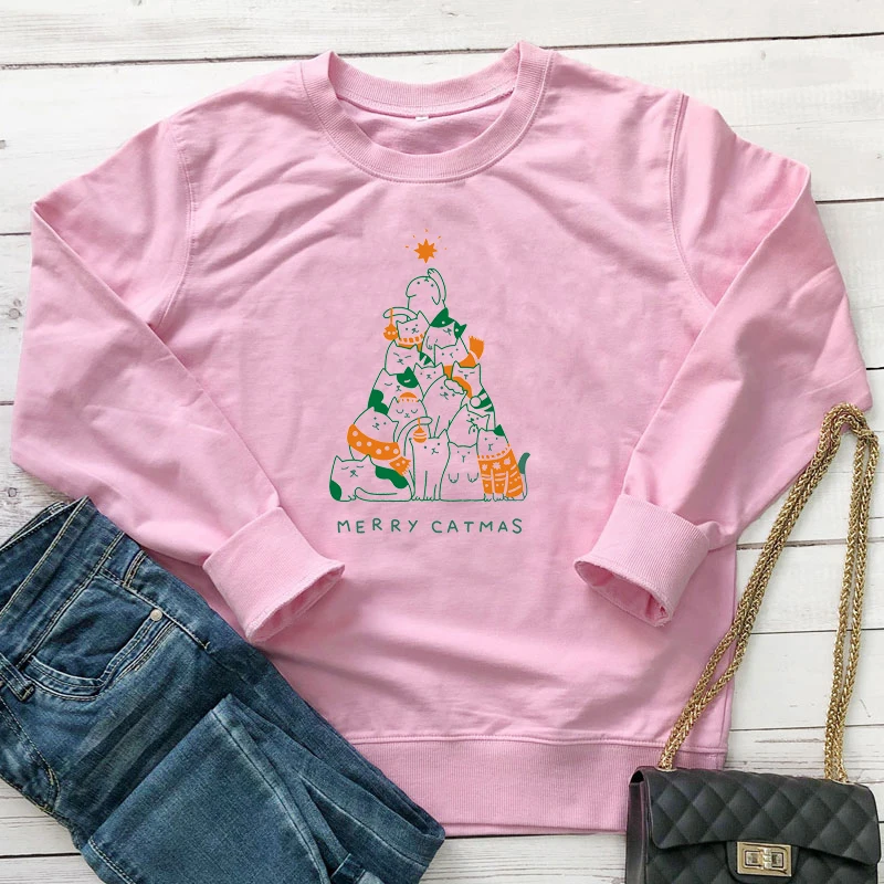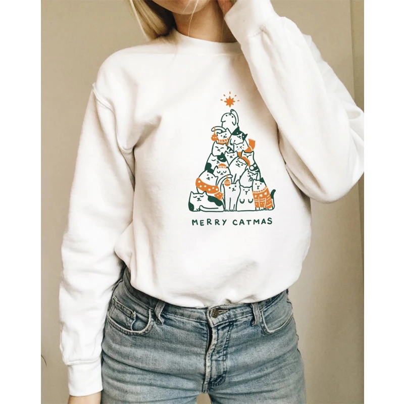 Свитшот женский, с изображением кошек, рождественских праздников, подарочные пуловеры