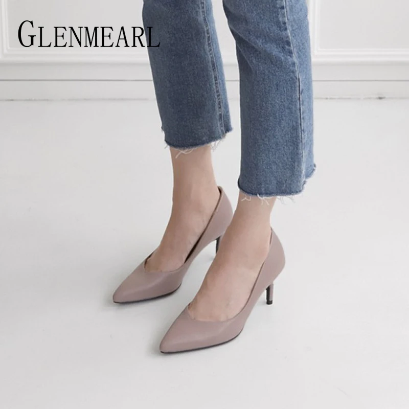 Туфли-лодочки женские на высоком каблуке, классические базовые, заостренный носок, без застежки, повседневная обувь, весна-осень-зима