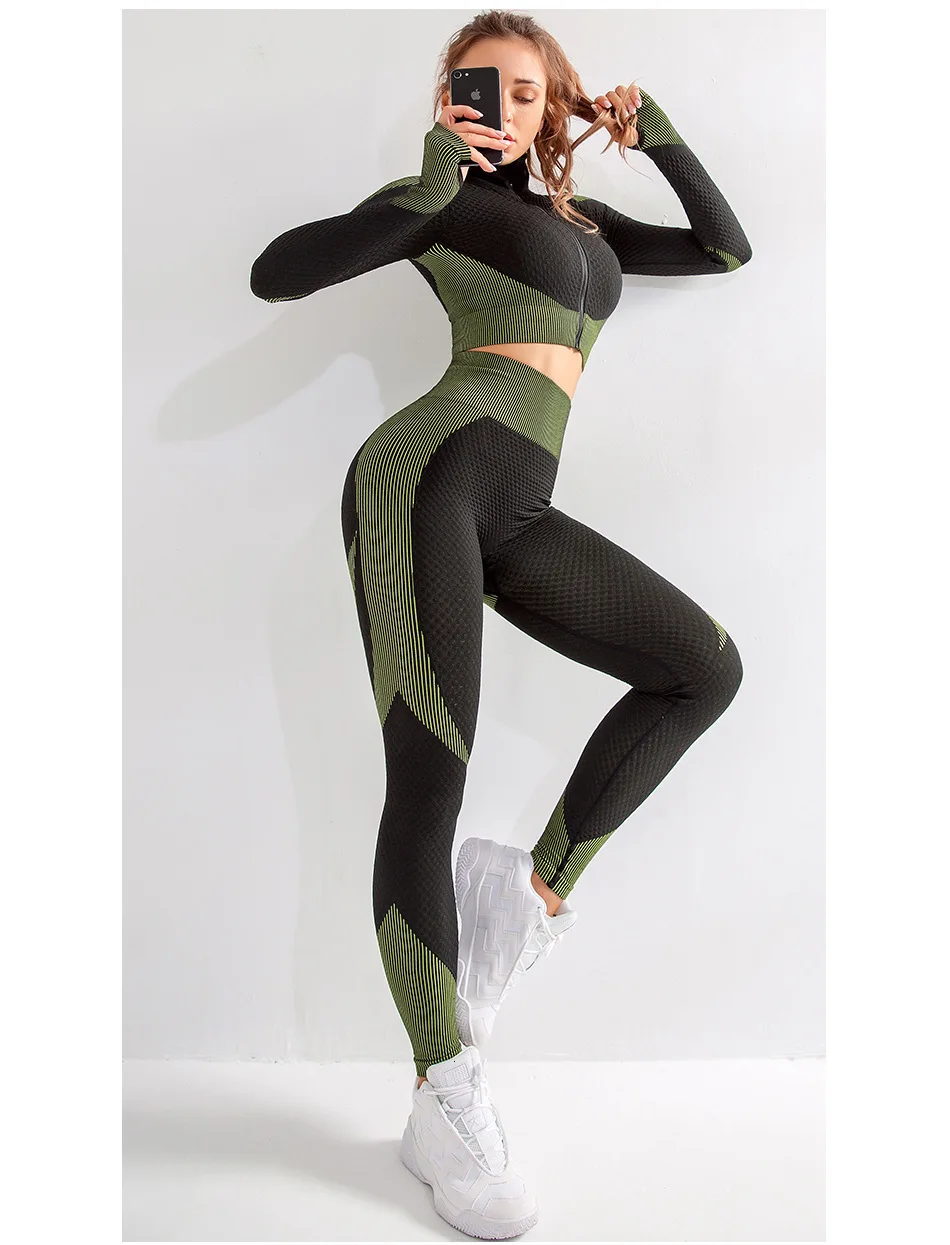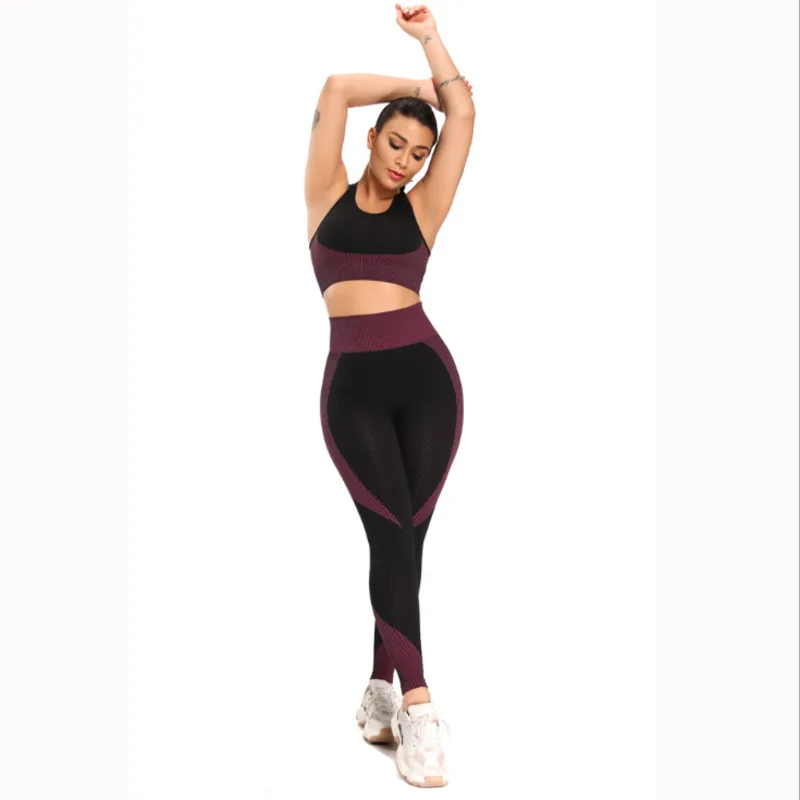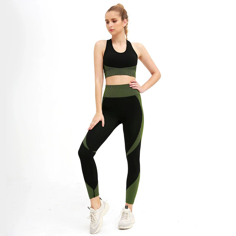 Брендовый спортивный костюм для женщин, бесшовный спортивный костюм для бега, спортивная одежда, укороченный топ для тренажерного зала, одежда для тренировок, леггинсы, комплект из 2 предметов