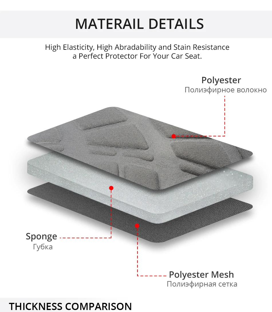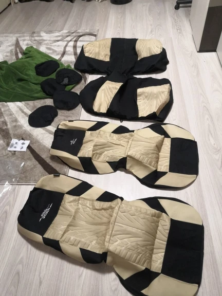На КИА Рио 2012 г.в. не подошёл - на передние сиденья -низ широкий, а верх натянут до предела. Не красиво торчат углы «переходов” и закрепить их как-нибудь не реально. Сзади есть карманы, но сама ткань всё сиденье сзади не закрывает. Ткань тонкая синтетика, уплотнённая небольшой прослойкой поролона со стороны сиденья. Цвет и рисунок красивые, если бы сели в размер- было бы красиво. Надгололовников 3 шт-тоже большие, болтаются. Доставка больше двух месяцев. Стоимость для таможни была указана 5$.