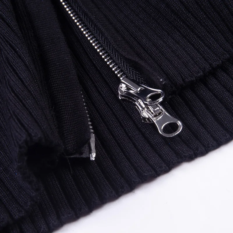 Женский весенне-осенний черный свитер в рубчик на молнии, короткий ...