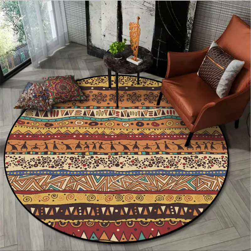 Коврики и ковровые покрытия для дома, гостиной, оранжевый круглый ковер с абстрактным этническим узором, 100% полиэстер, напольный коврик