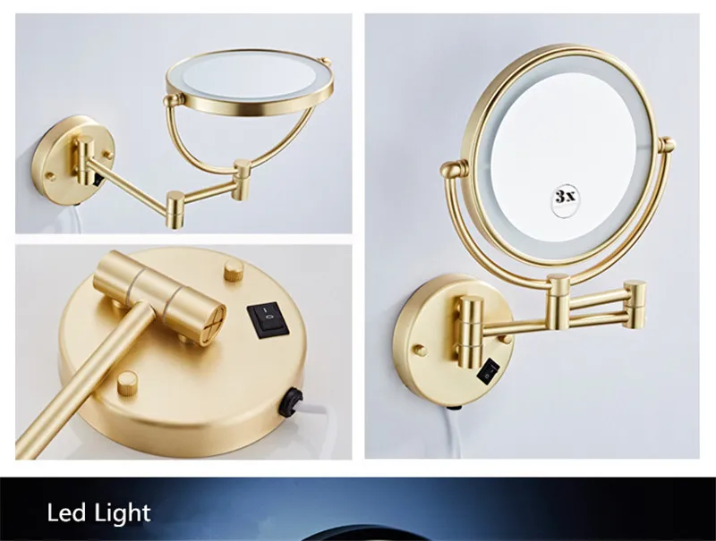 Зеркало для макияжа, складное, 8 дюймов, 3x1x, с золотым светодиодный