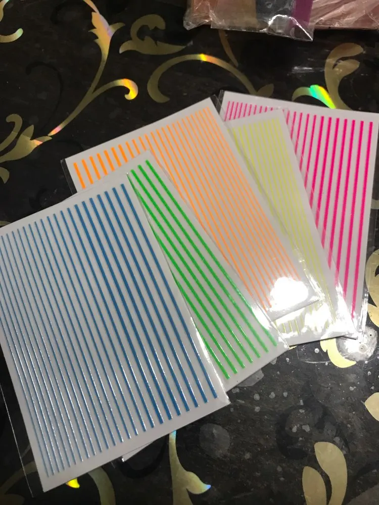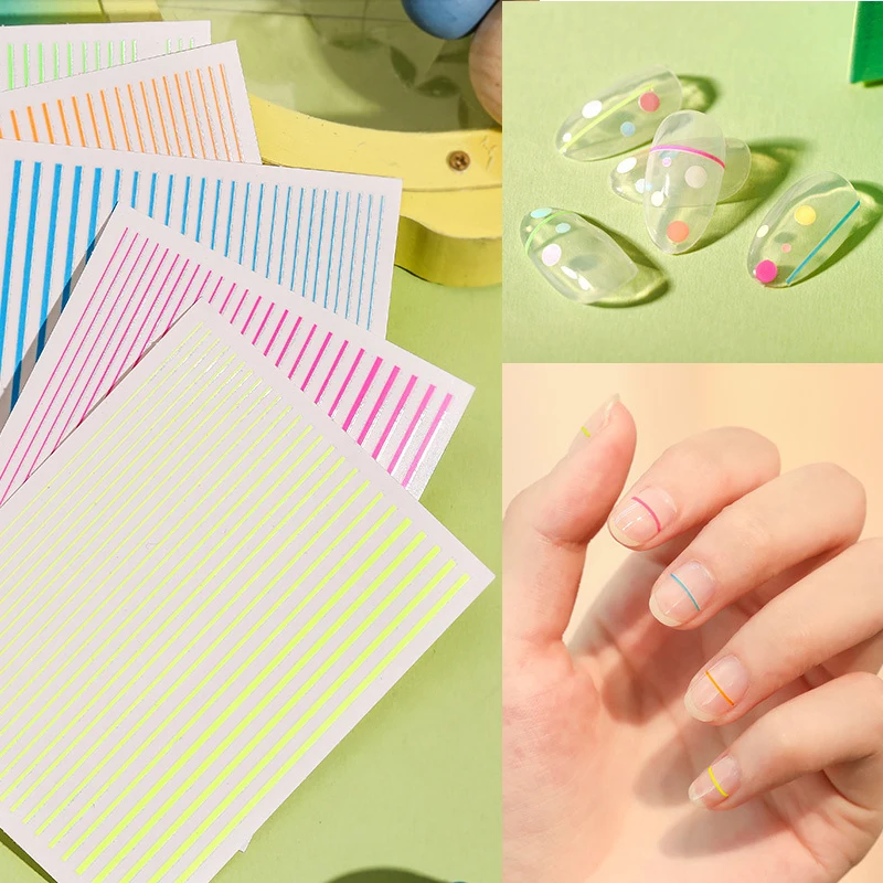 5 шт.лот, флуоресцентные наклейки для ногтей карамельных цветов, изогнутые линии, наклейки для ногтей, самоклеящаяся лента, наклейки для дизайна ногтей, аксессуары для ногтей