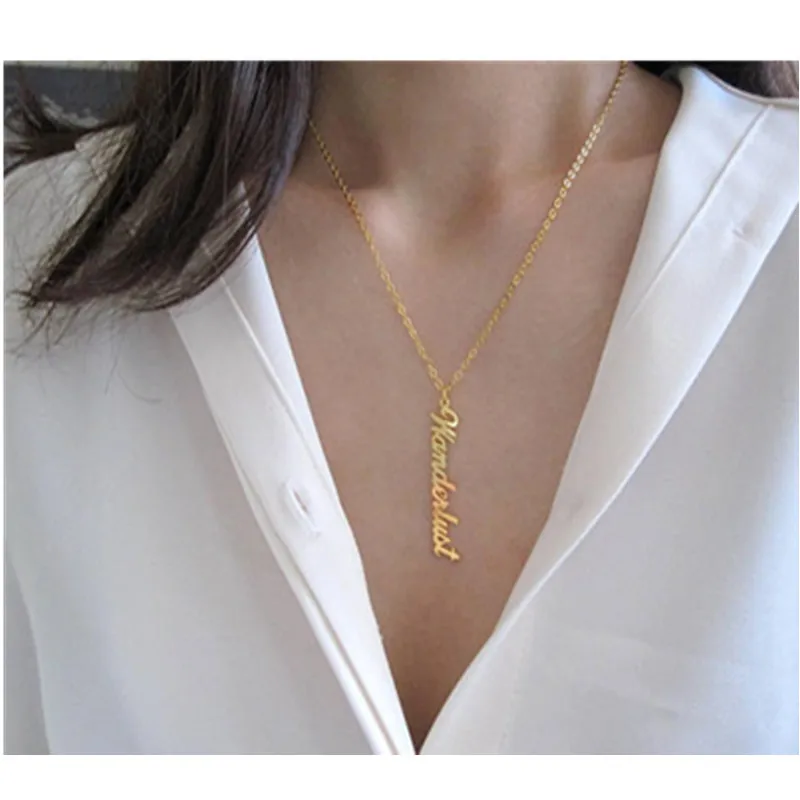 Индивидуальное вертикальное именное ожерелье, персонализированное серебряное Золотое розовое ожерелье-чокер, Женская именная табличка, ювелирные изделия, подарки подружки невесты