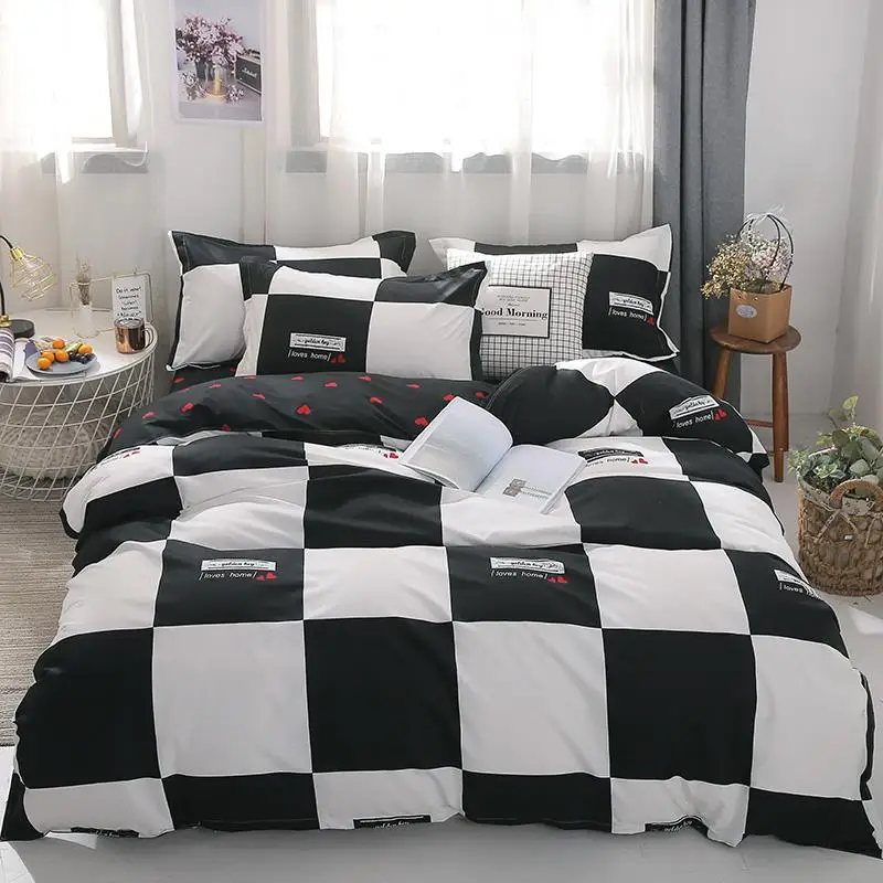Комплект пододеяльников из 4 предметов, черно-белая клетчатая Модна...