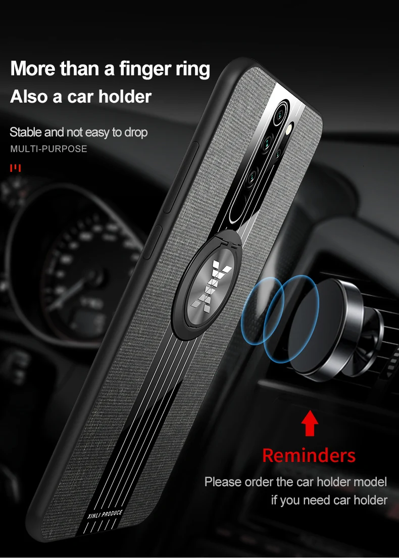 Чехол для Xiaomi Redmi Note 7 Pro, тканевый жесткий чехол с кольцом...