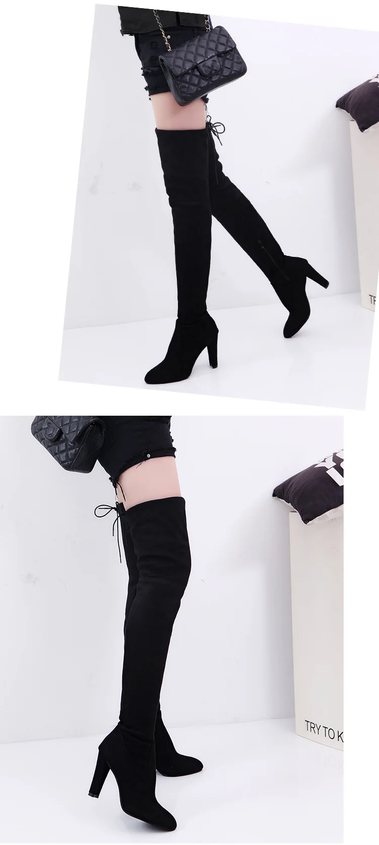 Женские сапоги выше колена, из флока, на очень высоком каблуке, бол...