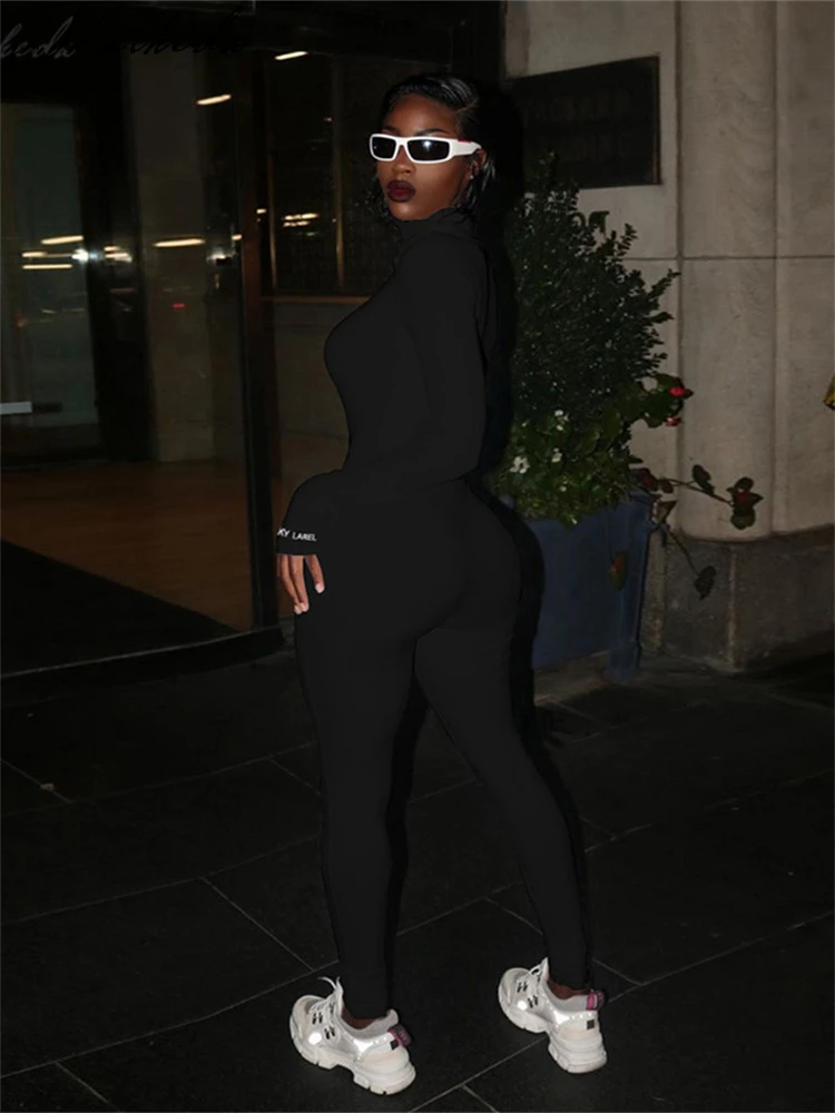 Женский комбинезон на молнии macheda, черно-белый Облегающий комбинезон с высоким воротником и длинными рукавами, повседневный комбинезон