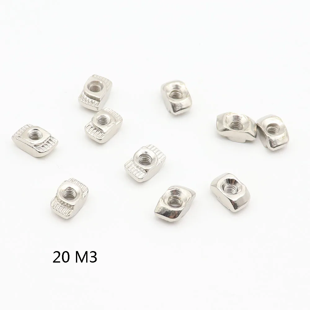 10 шт., Т-образная гайка M3 M4 M5 с никелевым покрытием, крепежная гайка для алюминиевого профиля экструзии серии 2020303040404545