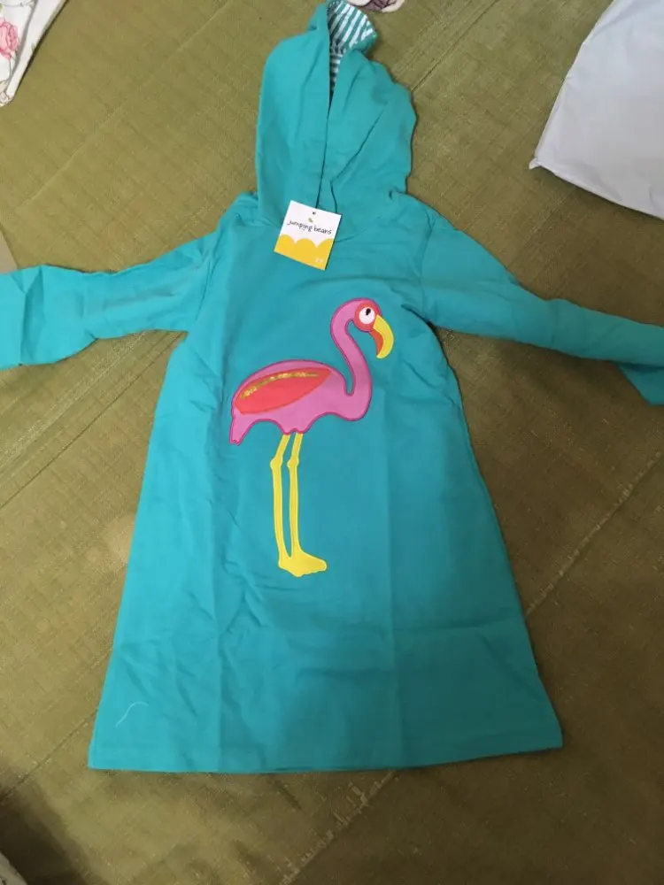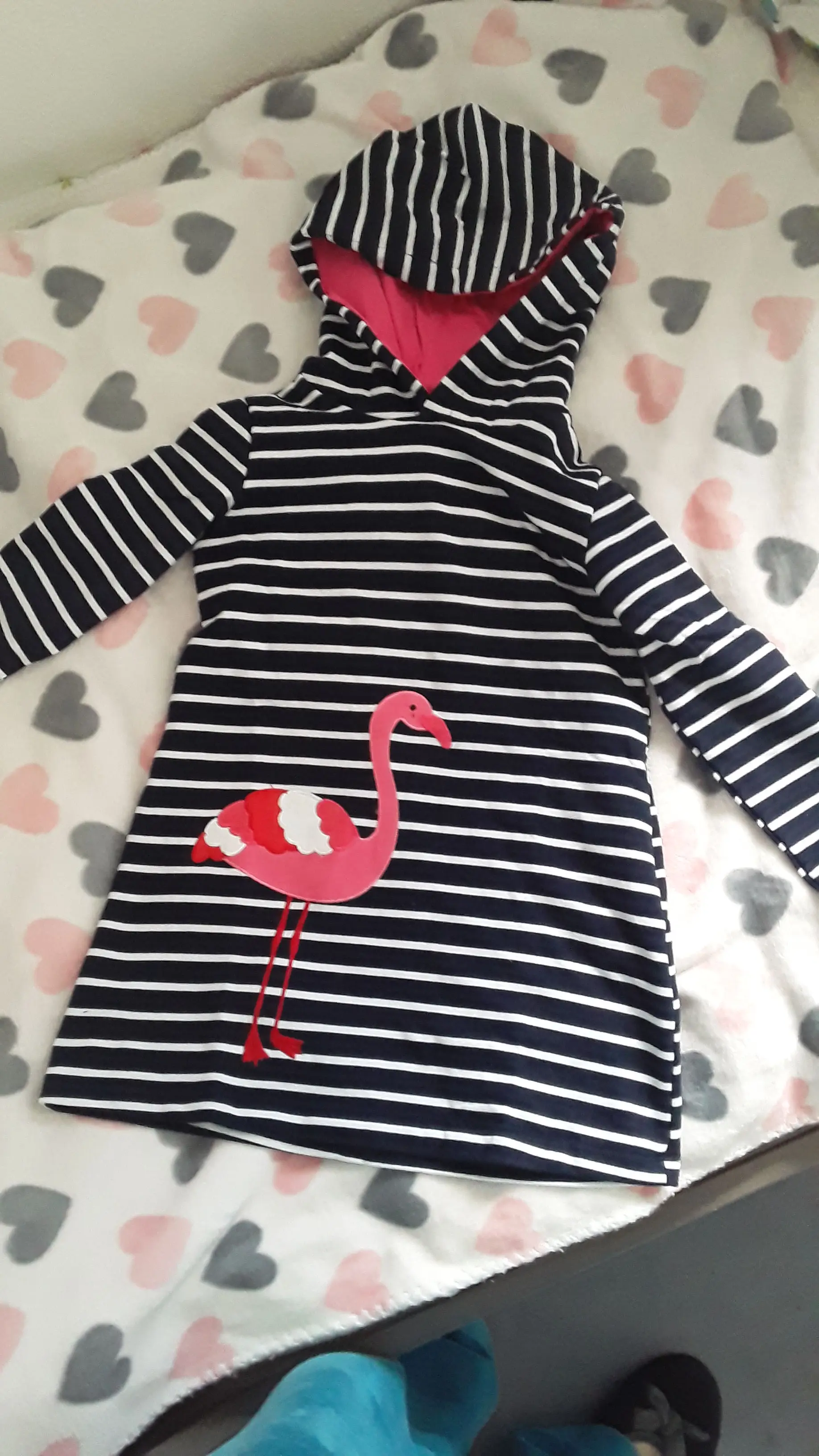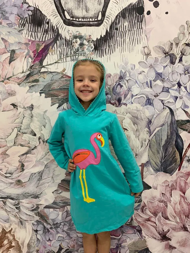Детское хлопковое платье с капюшоном, с длинным рукавом и изображением фламинго