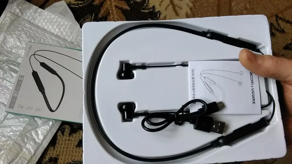 Дошло до Москвы бесплатной стандартной доставкой за 1.5 недели. Почтовый пакет с пупыркой (сам пакет со встроенной), внутри - заводская коробка с ложементом. В ней уже сами наушники, короткая инструкция и короткий проводочек для зарядки (microUSB). Зашейник довольно толстенький, но гибкостью обладает достаточной. а вот проводочки к найшникам тоненькие. На пульте кнопочки в меру жесткие, "точечка" (для нахождения кнопок на ощупь) на +, что немного непривычно - обычно самая используемая - средняя кнопка, и так нащупать ее бывает проблематично. Порт зарядки прикрыт резиновой крышечкой, но она как-то довольно сильно зафиксирована, поэтому надо постараться как чтобы открыть, так и чтобы закрыть порт. Качество звука довольно неплохое (за свои деньги). А вот магнитики на тыльной стороне наушников слабоваты. В целом за свои деньги нормально.