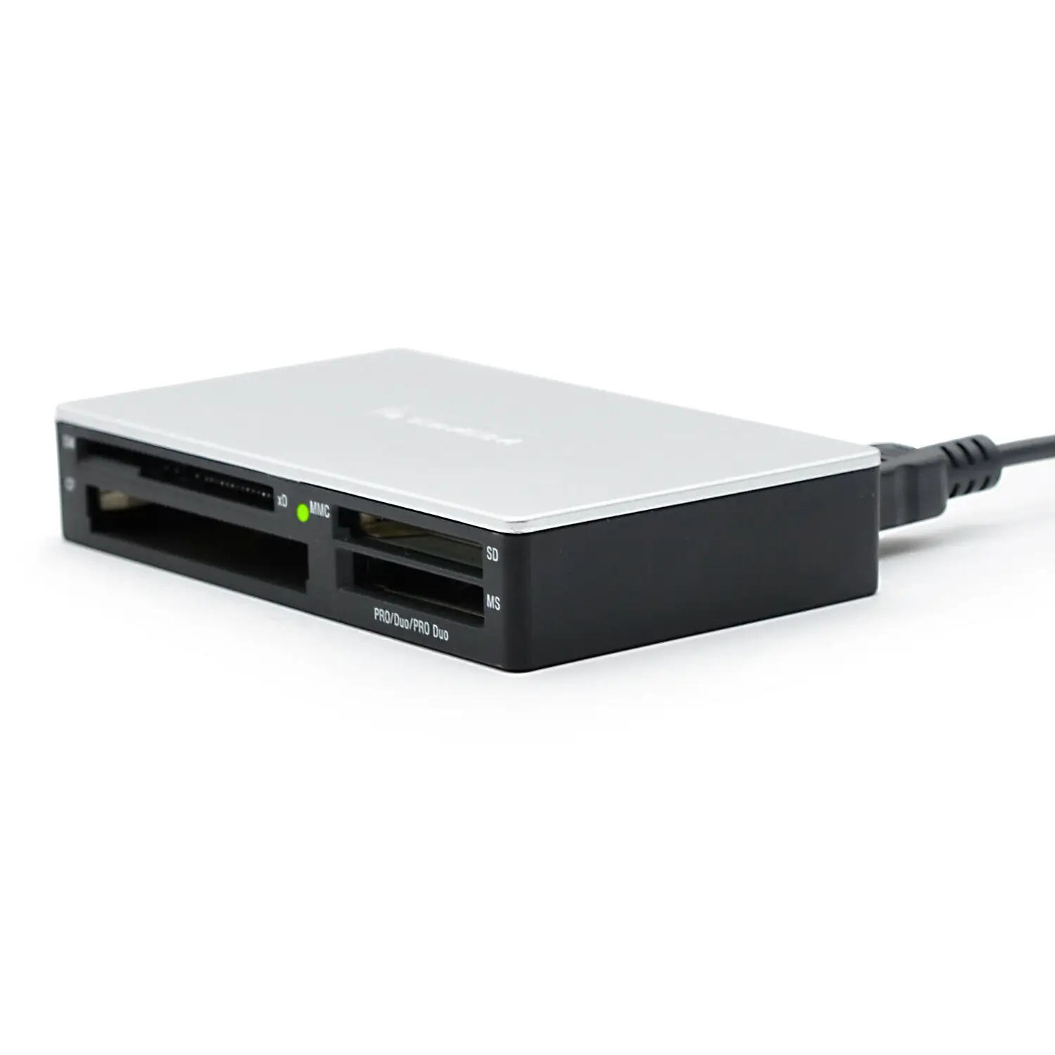 Тонкий мульти-кард-ридер для: SM (SmartMedia Card) /XD Picture Card / SD / SDHC / SDXC / miniSD / miniSDHC / MS / M2 / MS Duo / MS PRO Duo / MagicGate MS / MS Micro / MS PRO-HG карта Duo / CF / MicroDrive / MMC и RS-MMC, И т. д .. Серебряный универсальный внешний мультикардридер/Писатель для быстрого доступа к большинству обычных медиа-карт.