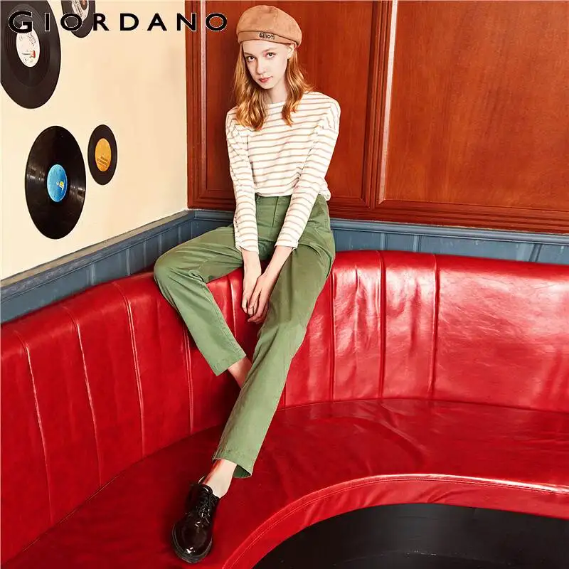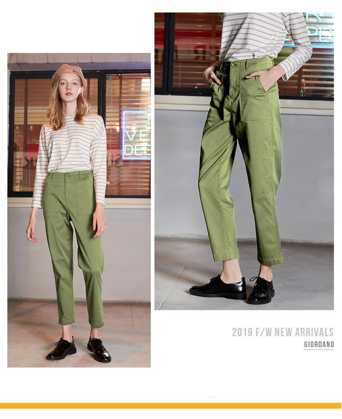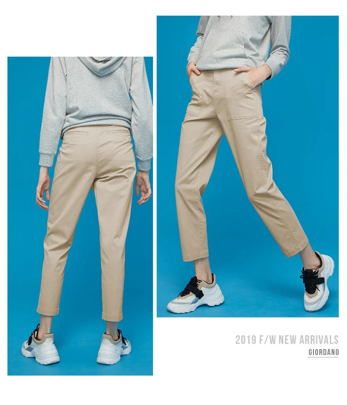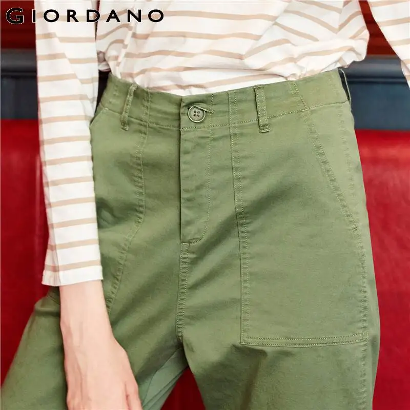 Женские брюки до щиколотки Giordano, однотонные брюки со средней талией и накладными карманами, на молнии спереди, 90429317
