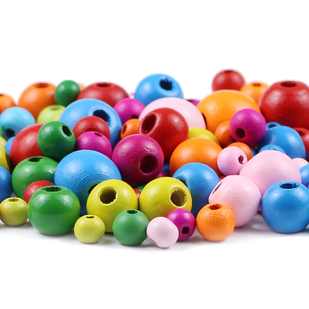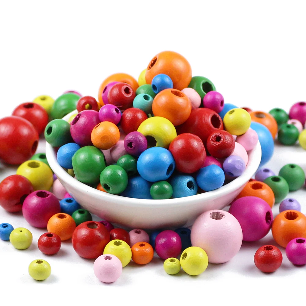 Бусины из дерева разных цветов с отверстием, круглые деревянные бусины 468 мм для изготовления ювелирных изделий, браслетов сделай сам, детские погремушки, соска для бисероплетения, 6-500 штук