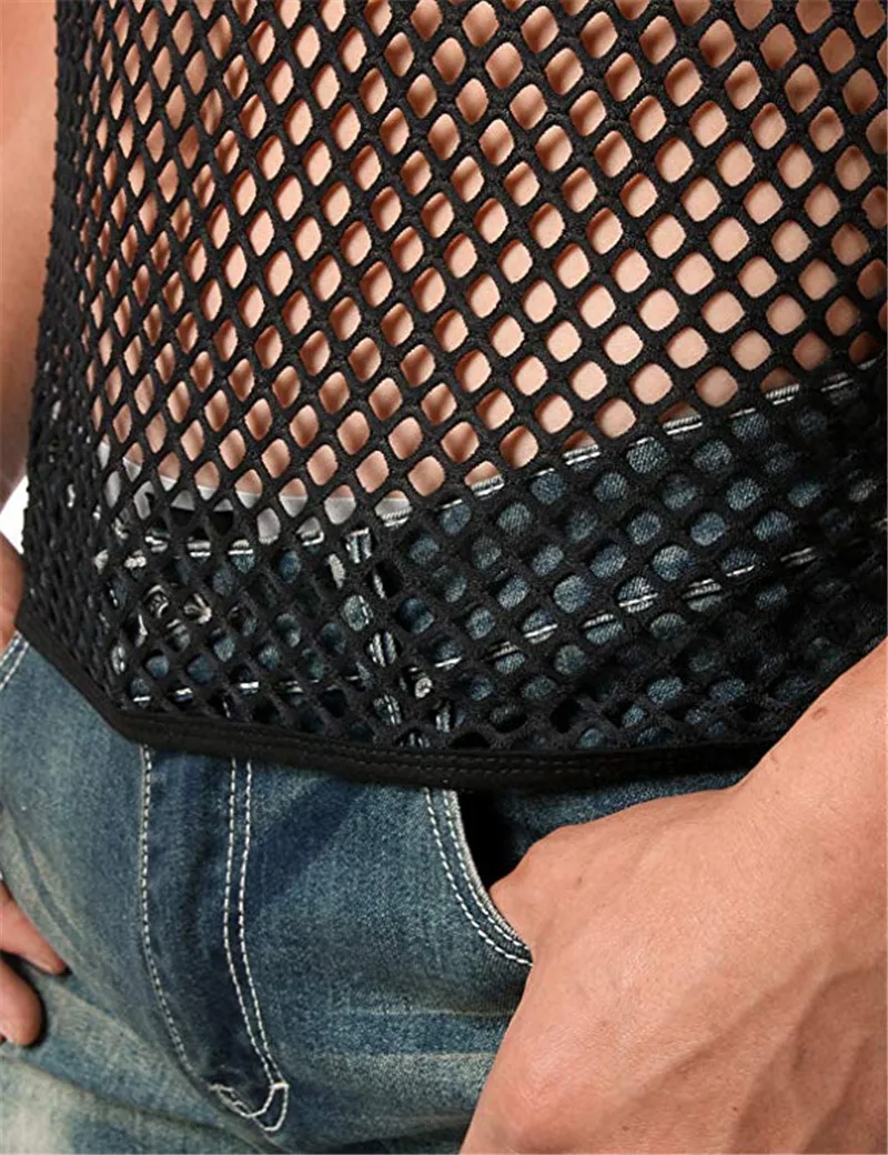 Мужская прозрачная сетчатая майка, нижнее белье, Прозрачная майка