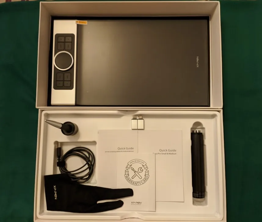 Планшет выбрал из-за материалов корпуса, купился на кольцо, но понял что оно вообще бесполезно на стандартном драйвере работает отвратительно, настроек мало, крутит рывками, плавности нет. С выходом нового драйвера на macOS 11, кольцо стало работать лучше, плавной прокрутки так и не стало, но хотя бы холст повернуть может. У меня брак подсветки, светит неравномерно, продавец проблему отказался признавать, пришлось звать али поддержку, вернули мало, но да ладно. Сенсорное кольцо просто ужас, лучше не использовать, трекпад на MacBook работает намного лучше и удобнее. Кнопки нормальные, можно использовать. Стилус хорош, очень лёгок, нажатия все работают хорошо, но вот наклон не понравился, чтобы он работал нужно давить. Перчатка повреждена (расхождение по шву). Принесли домой, коробка аккуратная, комплект полный, ощущение хорошее, но недотягивает до ВАУ. Очень хотелось бы чтобы кабель был usb c – usb c. Для начинающих – отличная покупка.