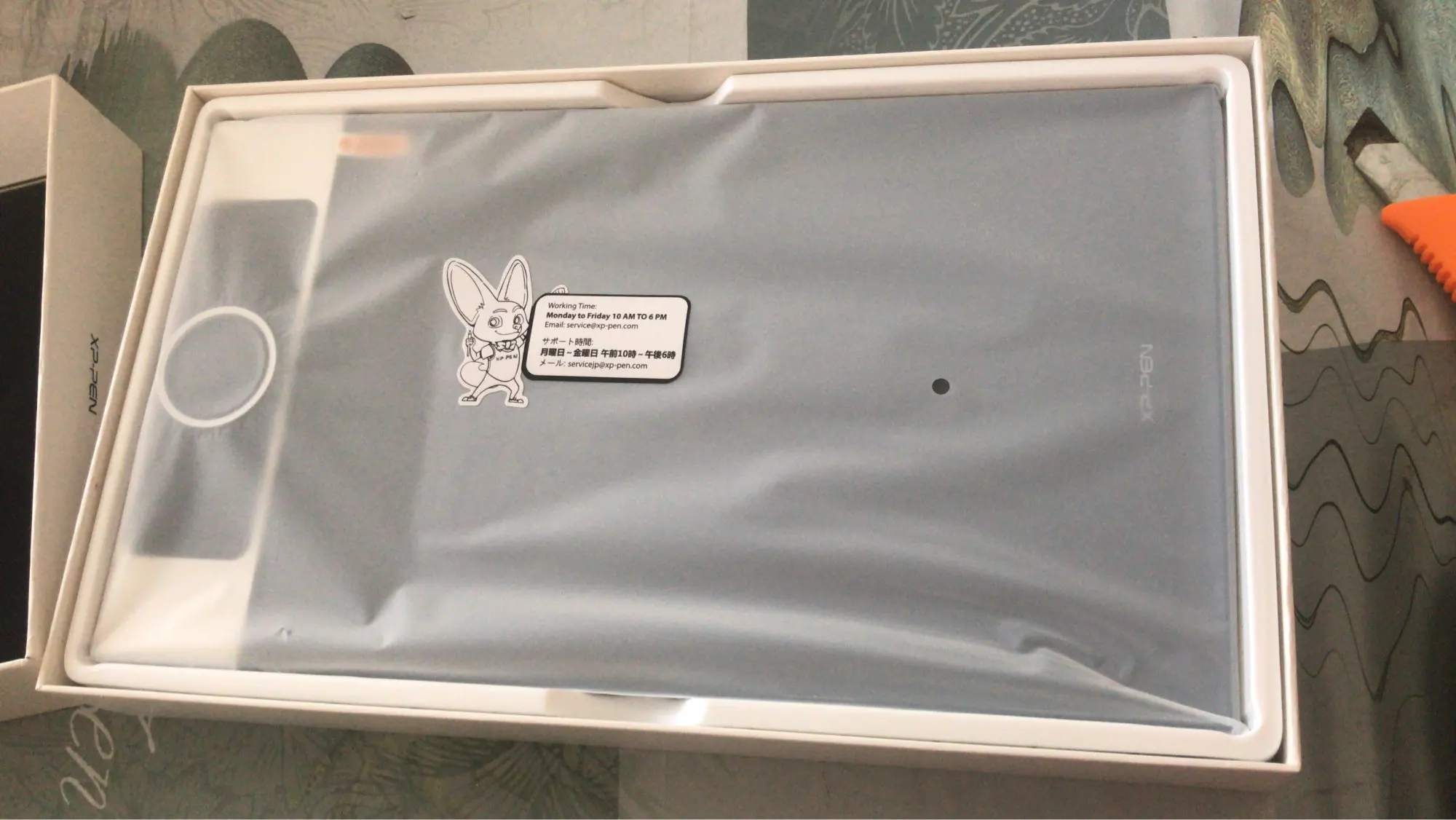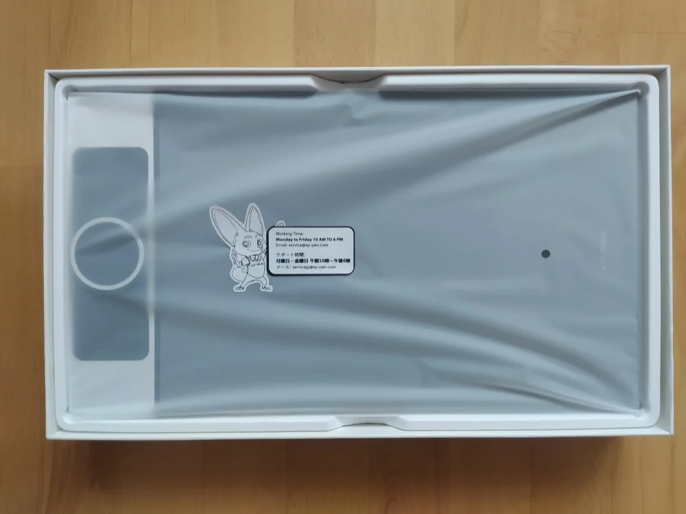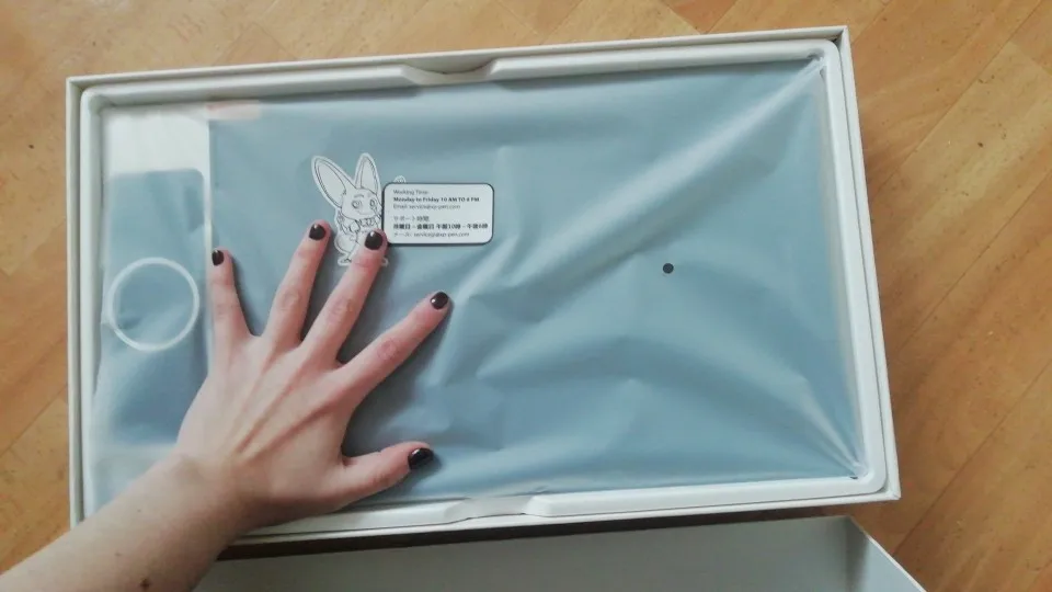 коробка доехала целая, не единой царапинки, комплектация классная. сам планшет здоровый, но на мой маленький стол поместился. рисовать было очень непривычно после G960 + долго ковырялся в настройках, но все работает! попозже дополню отзыв мб, если не забью.