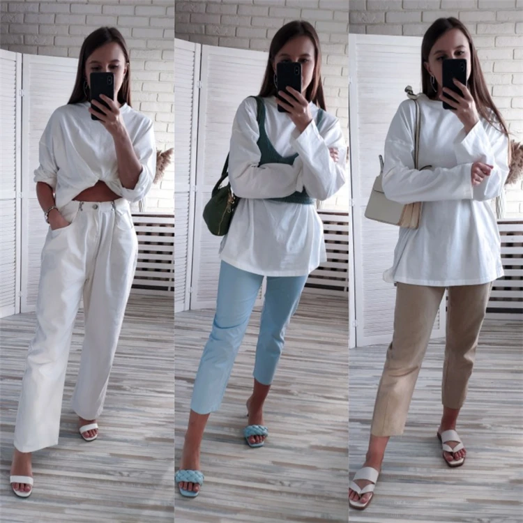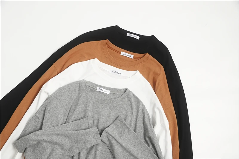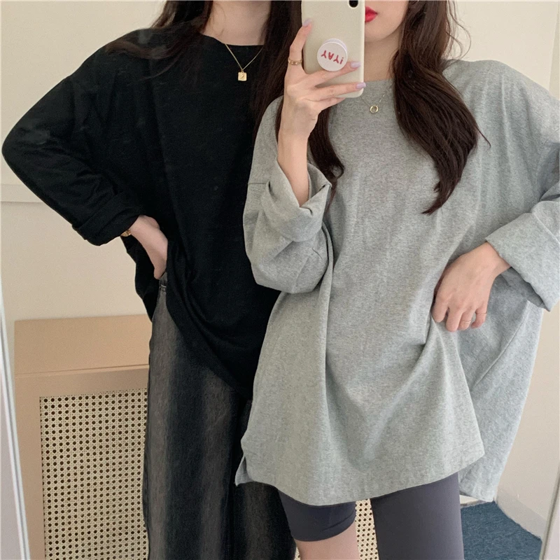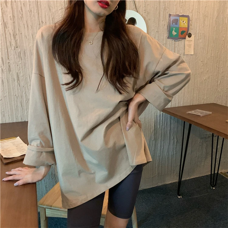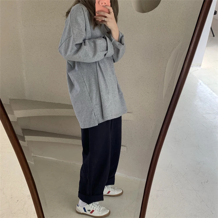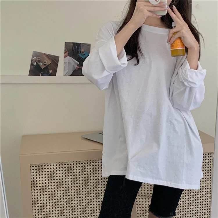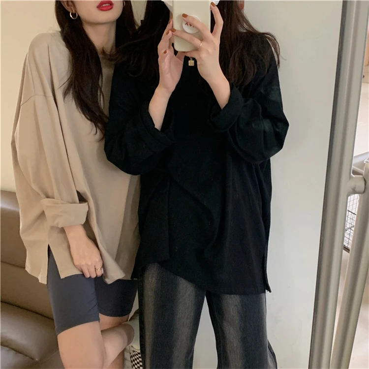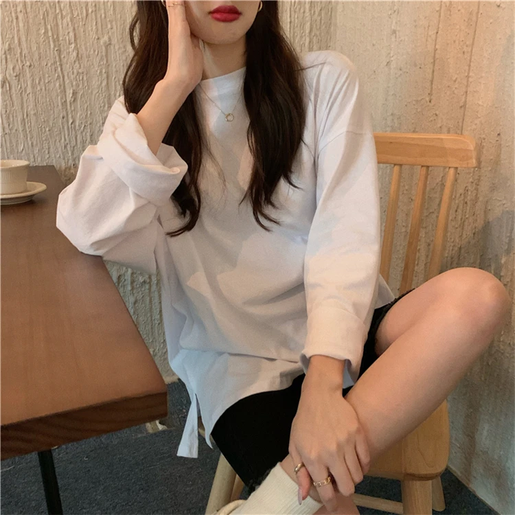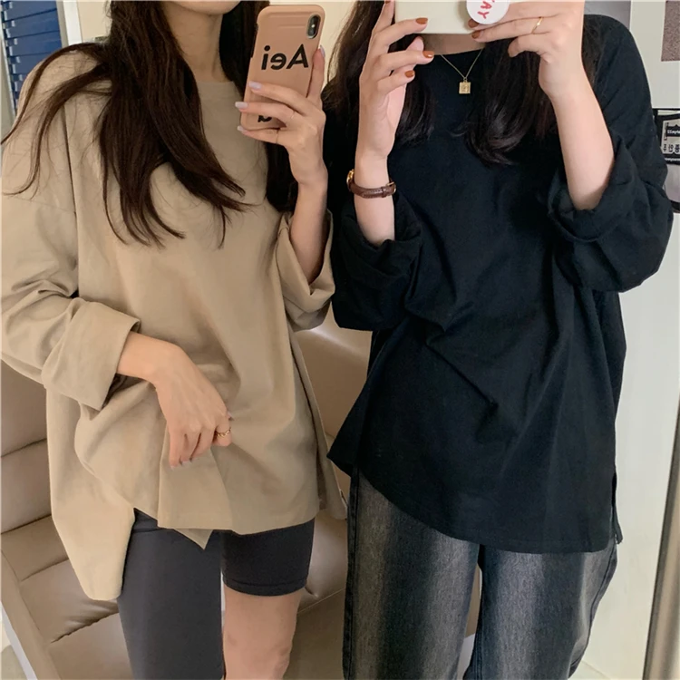 Футболка с длинным рукавом, однотонная, в корейском минималистическом стиле, T601, на осень, 2021