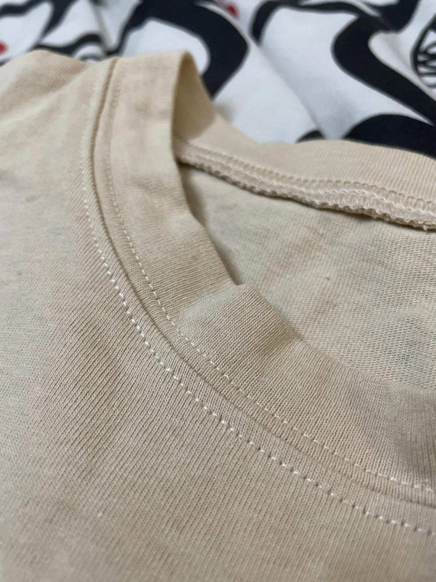 Отличная футболка! Цвет хороший, сливочный, никакого запаха, качественно прошито, ровно. Я очень довольна, сидит оверсайз, как и положено, рукава на месте, мой рост 172 см, размер S. Советую к покупке, спасибо продавцу, подарок (резинка для волос) тоже приятно.