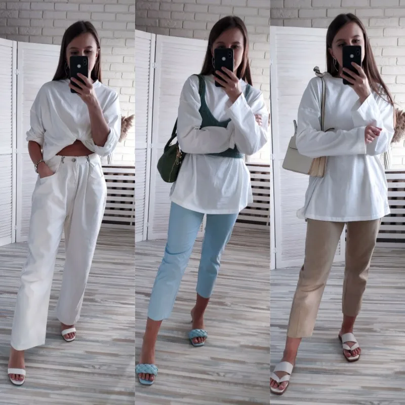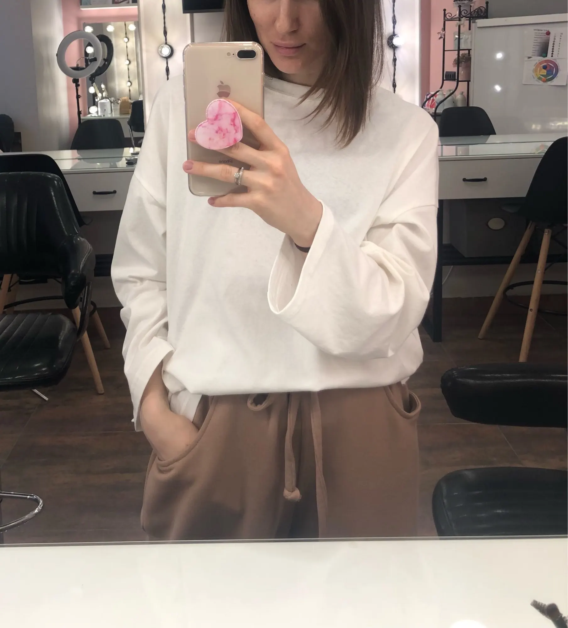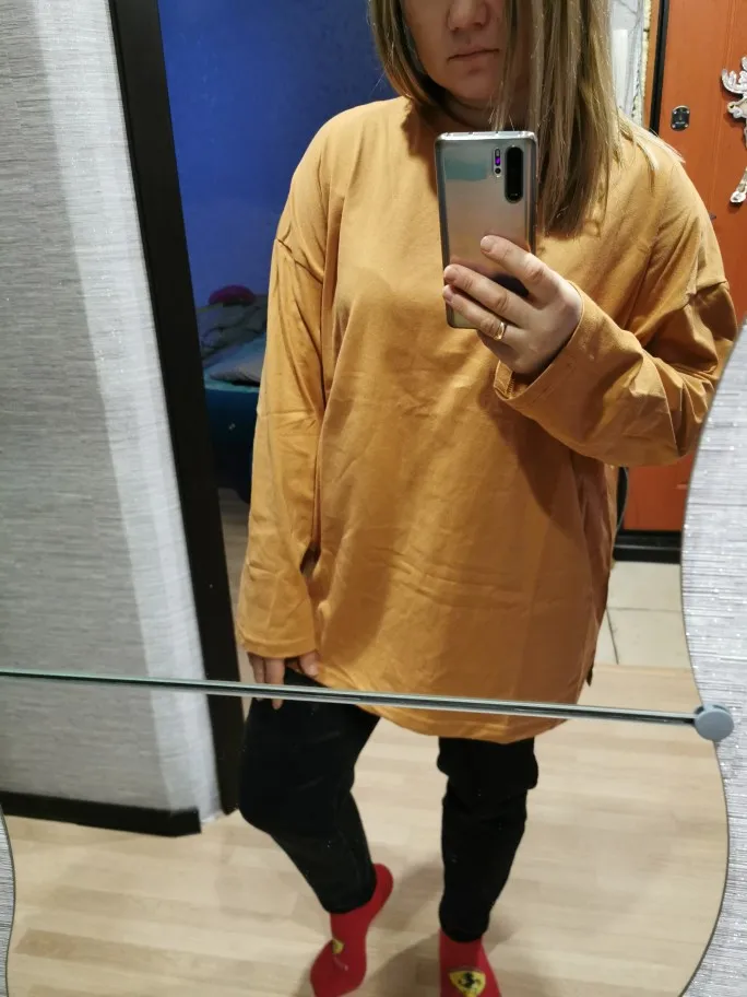 Девчата, эти лонгсливы просто супер) отличное качество, и длина и фасон. На объемы 99-73-100 это свободный лонгслив. Спасибо продавцу!!