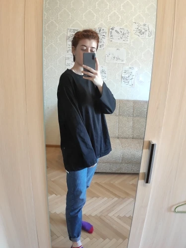 ну что хочу сказать..в первую очередь я удивлена шо попросив продавца поменять оранжевую на чёрную, он согласился и мне реально прислали чёрный лонг!! сшито все отлично, реально хлопок, на мне свободная(рост 163, вес 48), рукава бы чуть шире и подлиннее, но это уже чисто мое тк я привыкла ходить как пьеро. стою на фотке як джо джо или как лох ну ладно фред и джордж одобряют