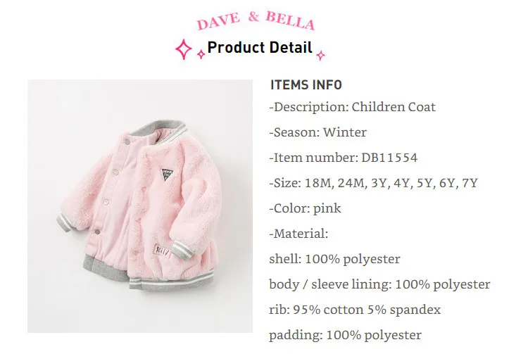 DB11554 dave bella зимнее пальто для маленьких девочек, детская стеганая куртка, детское пальто высокого качества, детская стеганая верхняя одежда