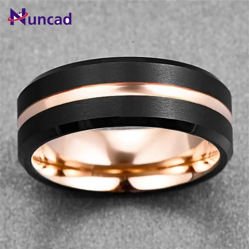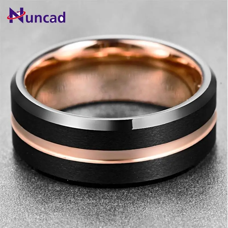 Мужское кольцо шириной 8 мм из карбида вольфрама, черное гальваническое покрытие + матовая поверхность из розового золота с канавками, кольцо из вольфрамовой стали, 2019