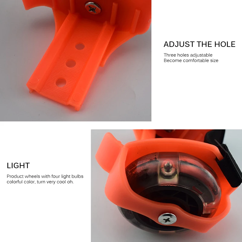 Регулируемый Мигающий Ролик можно отрегулировать через крестовой ключ (не входит в комплект). Есть три отверстия, чтобы вы могли изменить в соответствии с практической ситуацией. Красочный Каждый владеет четырьмя цветными лампочками. Когда колеса продолжаются, световой эффект Прохладный в темноте. Безопасный Конструкция пряжки позволяет плотно фиксировать ногу на ролике для обеспечения безопасности использования. Дно состоит из металлической панели, которая долговечна и безопасна в использовании. Прочный Мигающий ролик изготовлен из высококачественного ПВХ-материала и высокопрочной углеродистой стали, износостойкой и гладкой в работе. Область применения Мигающий Ролик предназначен для детей, что может доставить вам счастливое время катания. Также его можно использовать в качестве подарка для ваших малышей. Спецификация: Тип: Мигающий Ролик Количество: 2 шт. Материал: ПВХ + TPR + углеродистая сталь Цвет: оранжевый, синий Источник светильник: 4 шт. Разносветильник Размер: 13*9 см/5,11*3,54 дюйма Вес: 610 г/1,34 фунта Комплектация: 2 * Мигающий Ролик Посылка вочная коробка