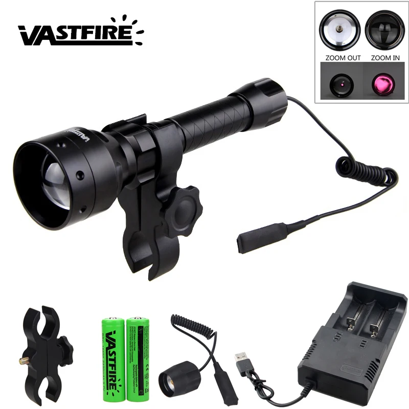 Светильник для охоты T50, инфракрасный светильник для оружия с ночным видением, объектив 50 мм, ИК разведывательная лампа с креплением для винтовки, переключатель, зарядное устройство 18650 нм