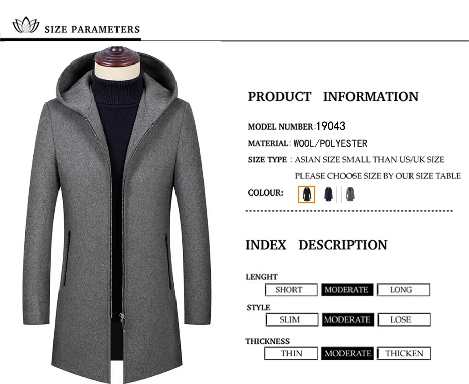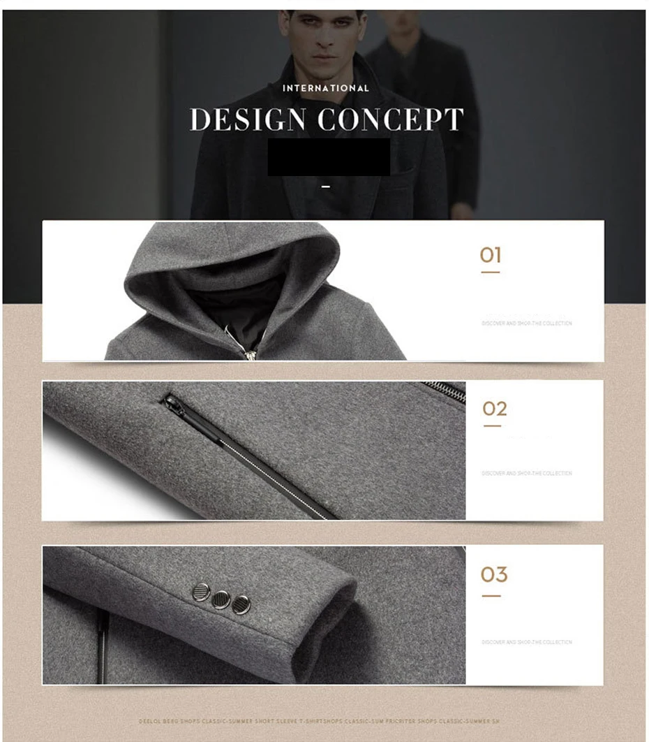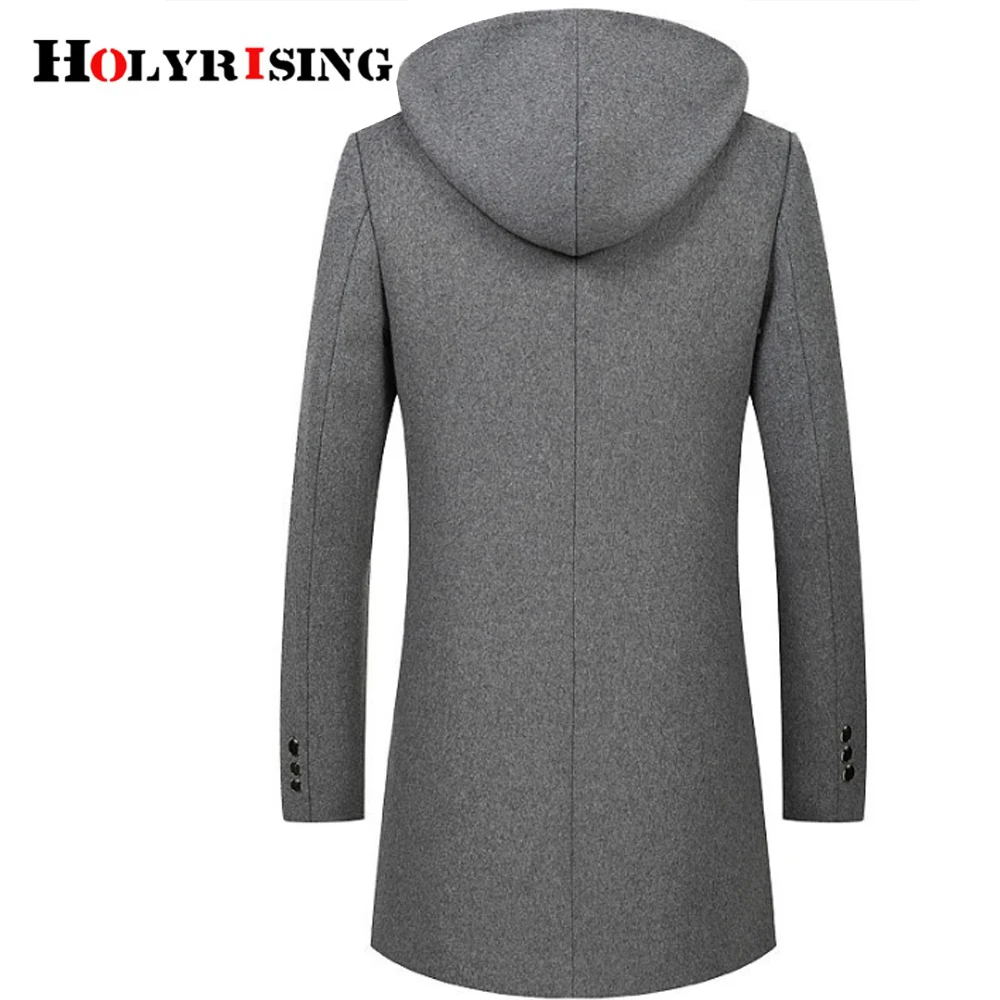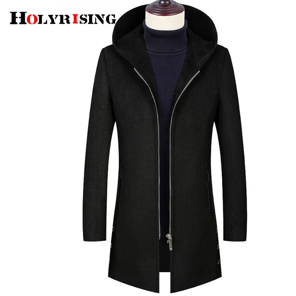 Шерстяное мужское пальто Holyrising с капюшоном, зимнее мужское шерстяное пальто в британском стиле, новый дизайн, высококачественное шерстяное пальто на молнии с капюшоном для мужчин 19043-5