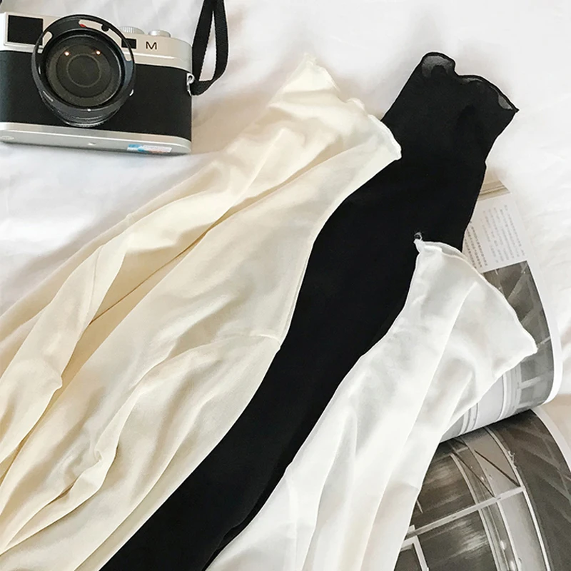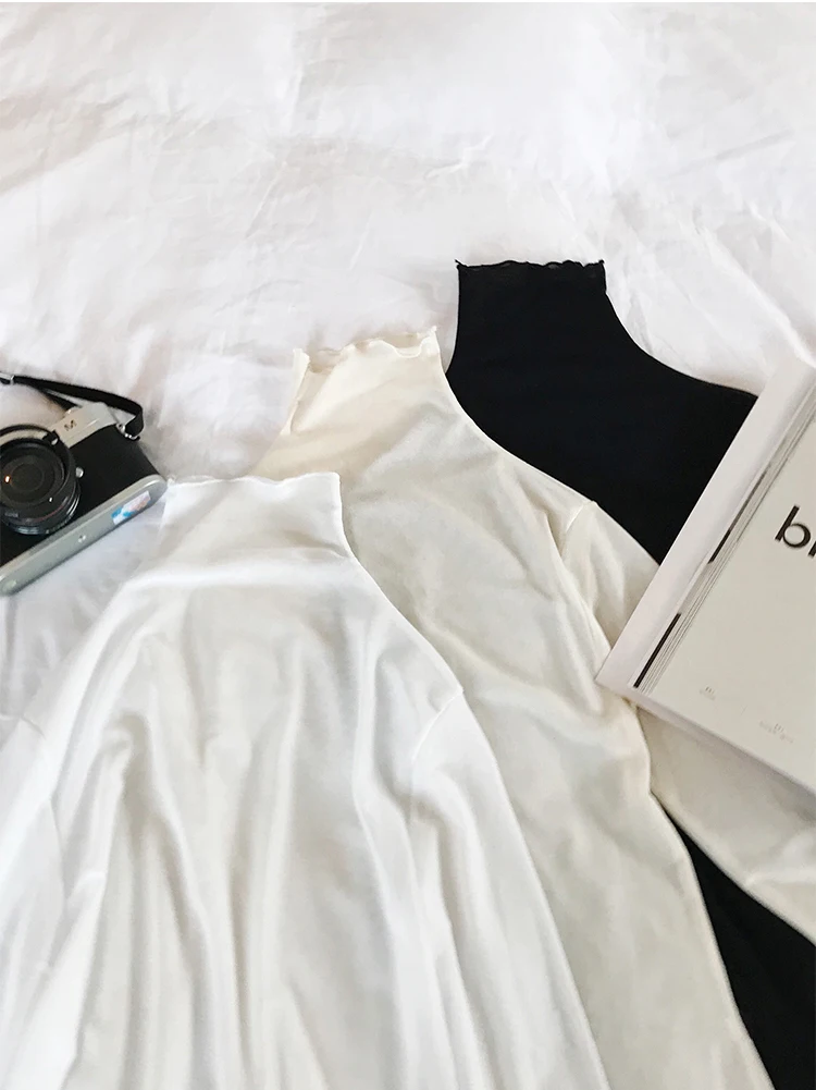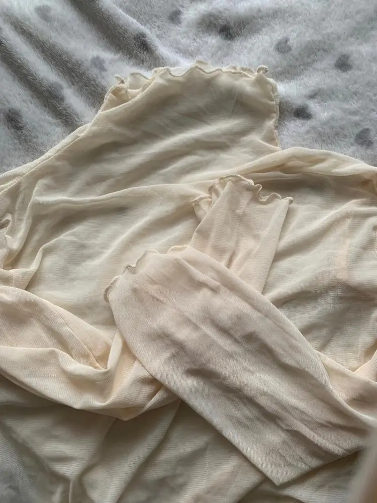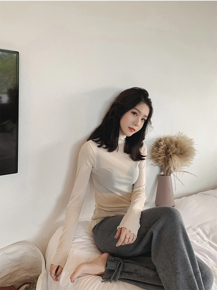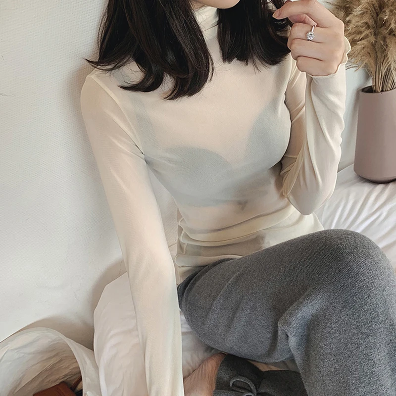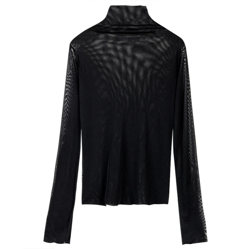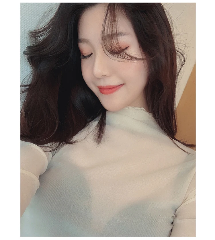 Тонкая Просвечивающая футболка с длинным рукавом и высоким воротником, XZ621