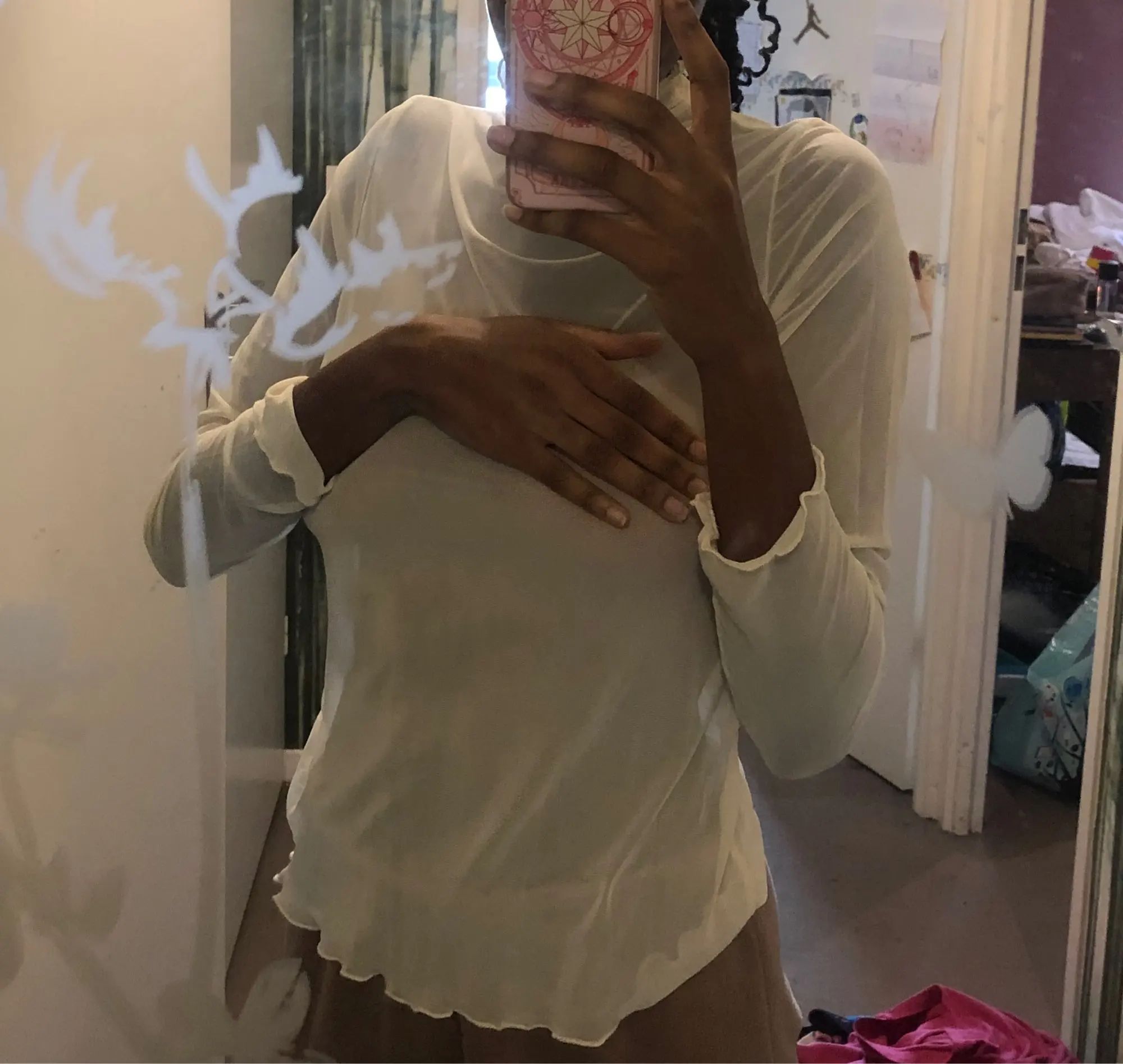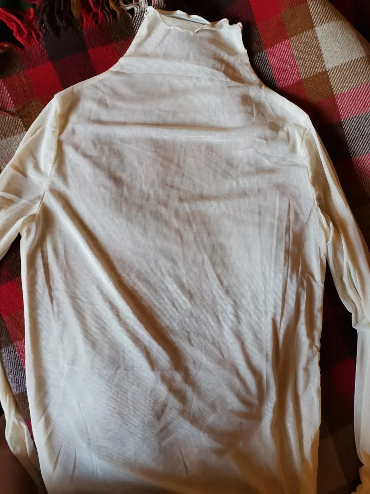 Это так же, как на фото. Он имеет среднюю линию, которая выглядит так, как будто вы собираетесь заниматься картой в чулках, но ничего серьезного. Это не беспокоит меня, так как я думал, что поставлю это с вещами, в противном случае здорово. Я обязательно куплю другие цвета. Я очень счастлив.