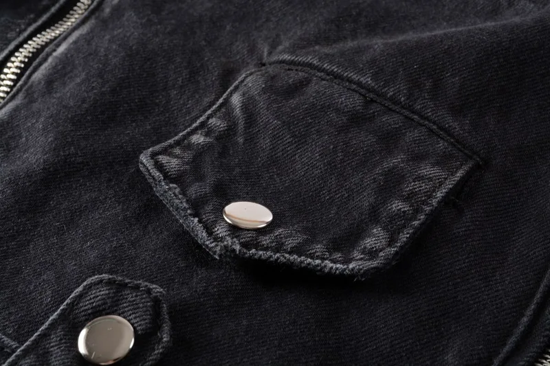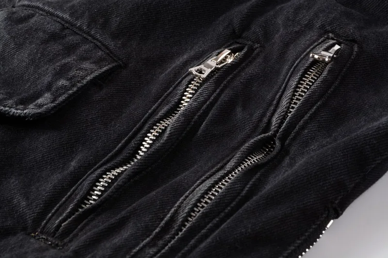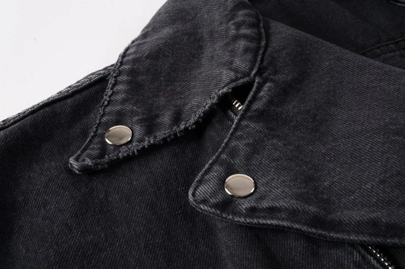 Мужская Байкерская джинсовая куртка, черная джинсовая куртка в стил...