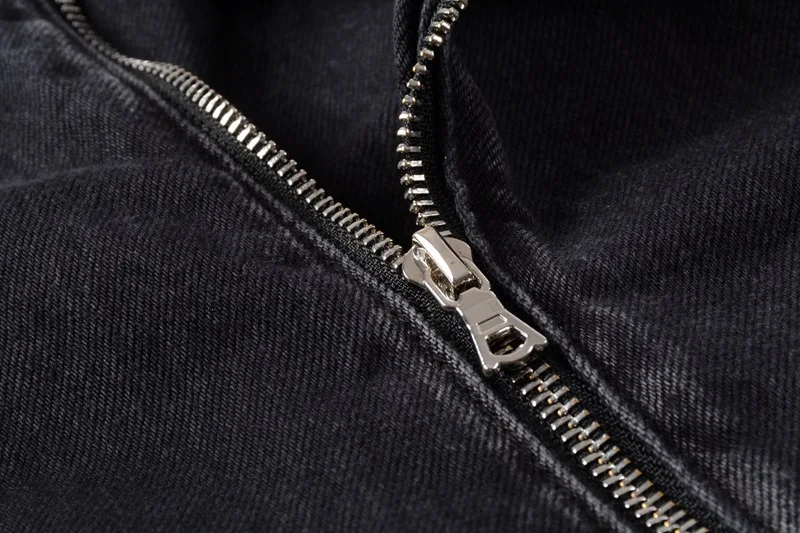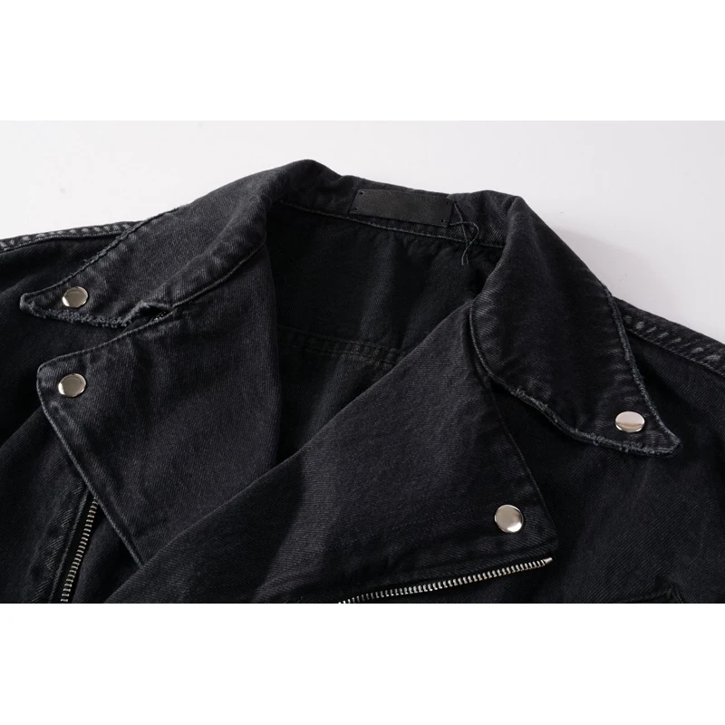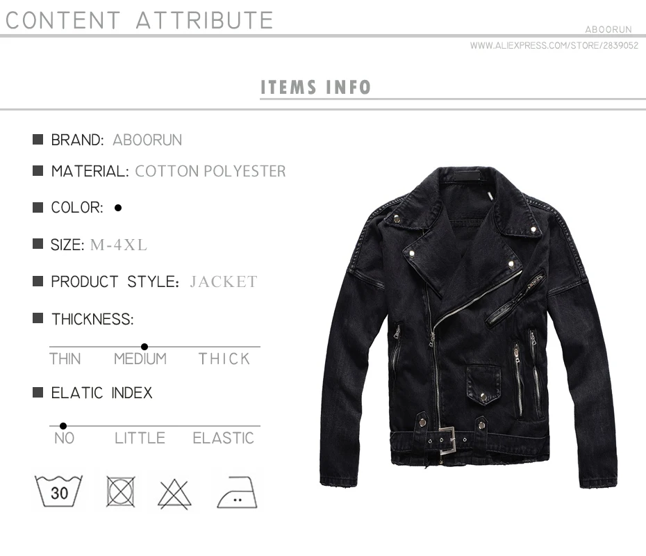 Куртка ABOORUN Мужская джинсовая в стиле панк, Байкерская приталенная, из денима, с молнией, черная, R2843