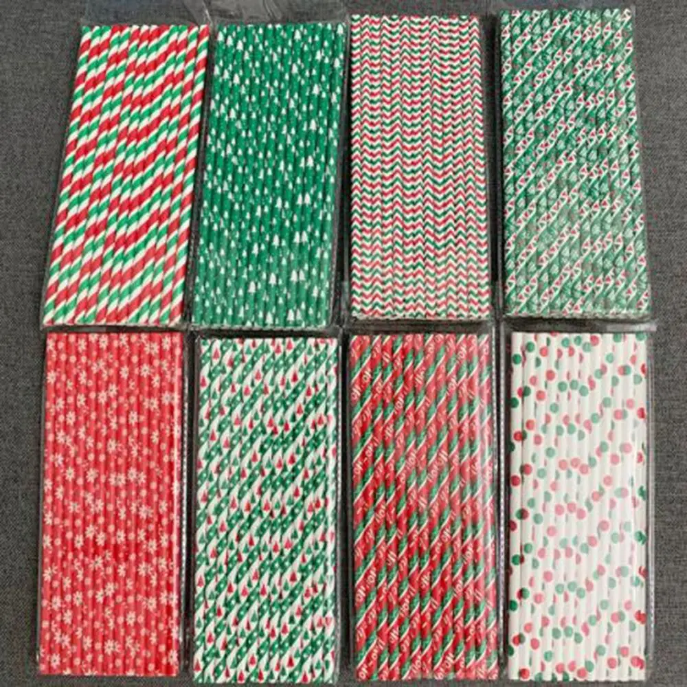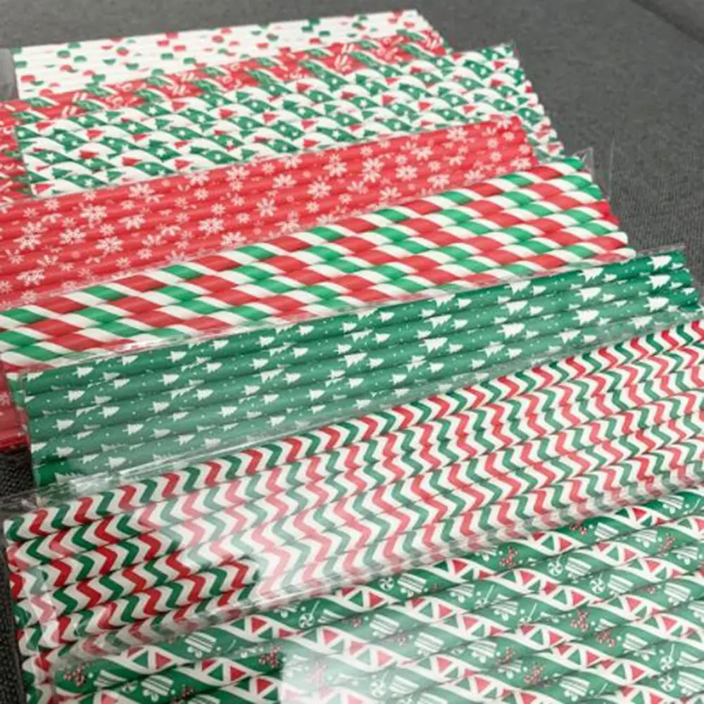 25 шт.компл. бумажные соломинки для напитков, Рождественская елка, полосатые одноразовые бумажные соломинки, Свадебная вечеринка, Рождественское украшение